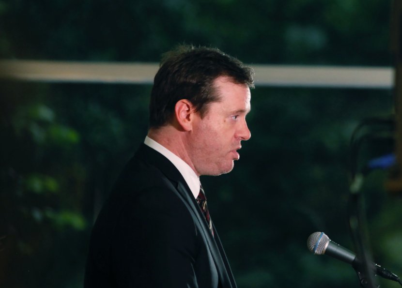 Drew Lumpkin reads a statement from Sen. Mark Warner. Photo David B. Hollingsworth/ODU