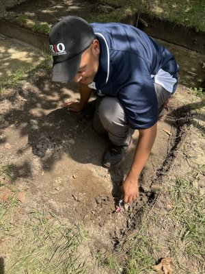 David Morgan uses a trowel to search for artifacts during his internship with the Fairfield Foundation, a non-profit focused on archaeology, preservation, and education. Photo courtesy of David Morgan