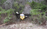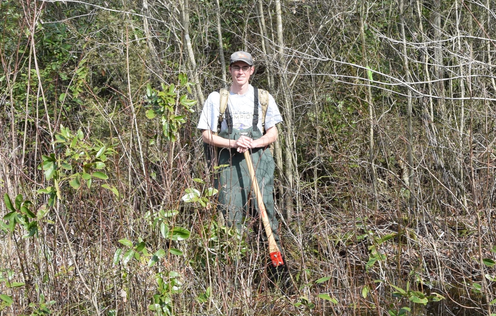 Nick Flanders cutting a trail to a research site in the forested wetlands of Great Dismal Swamp National Wildlife Refuge, Suffolk VA