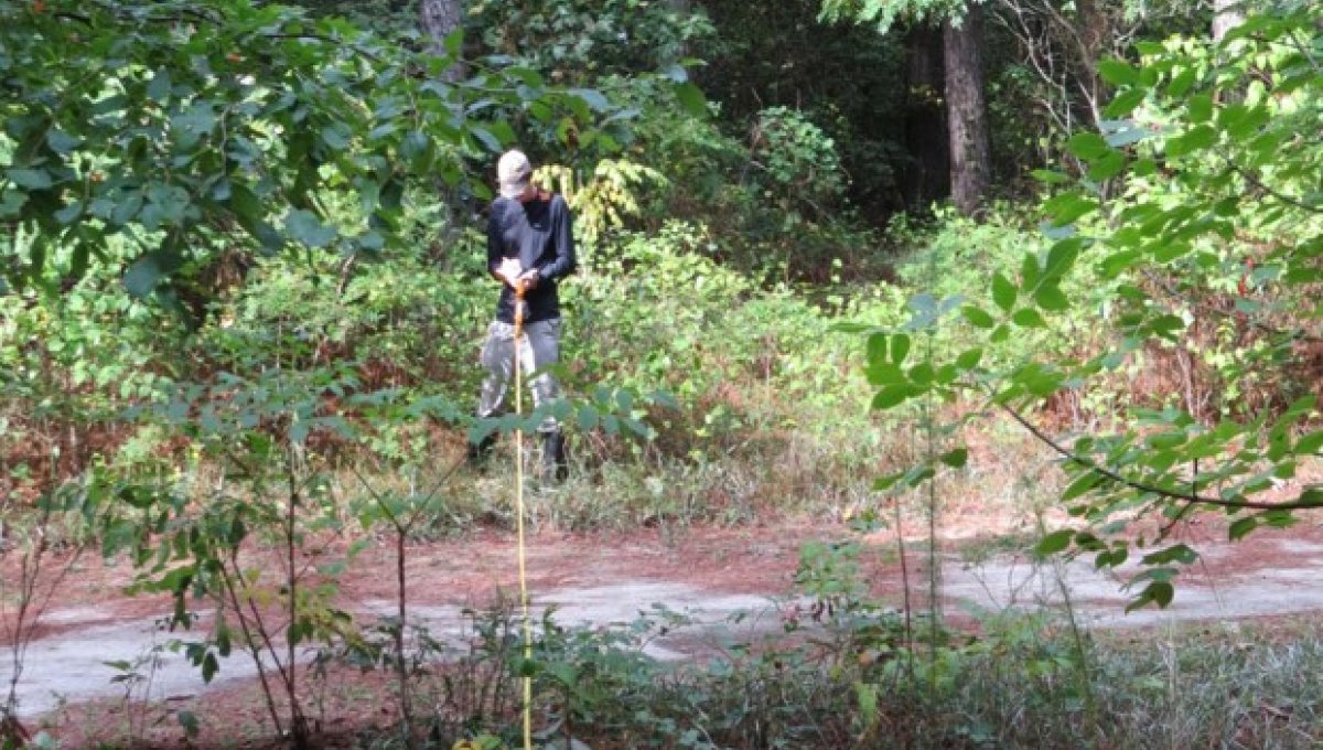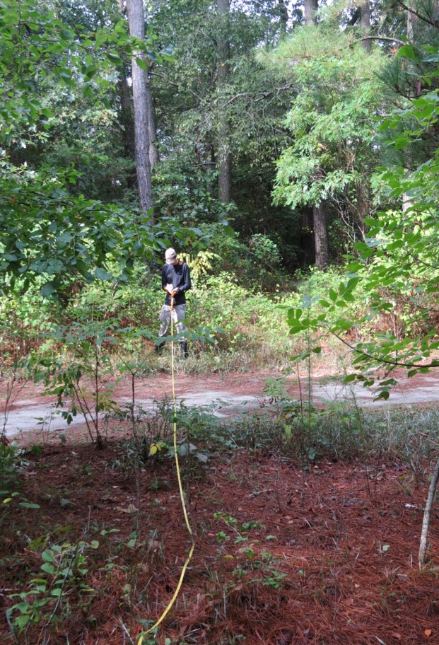 Chance Hines measuring vegetation at Kiptopeke State Park.