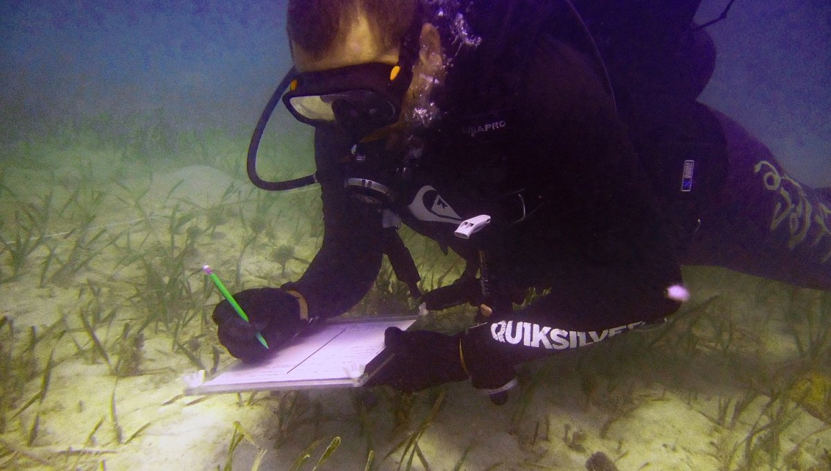 Surveys near the experimental patch reefs where Jason Spadaro conducted most of the initial studies for the work done with the Kirk Wetlands Award funding