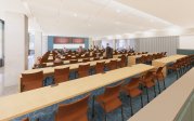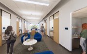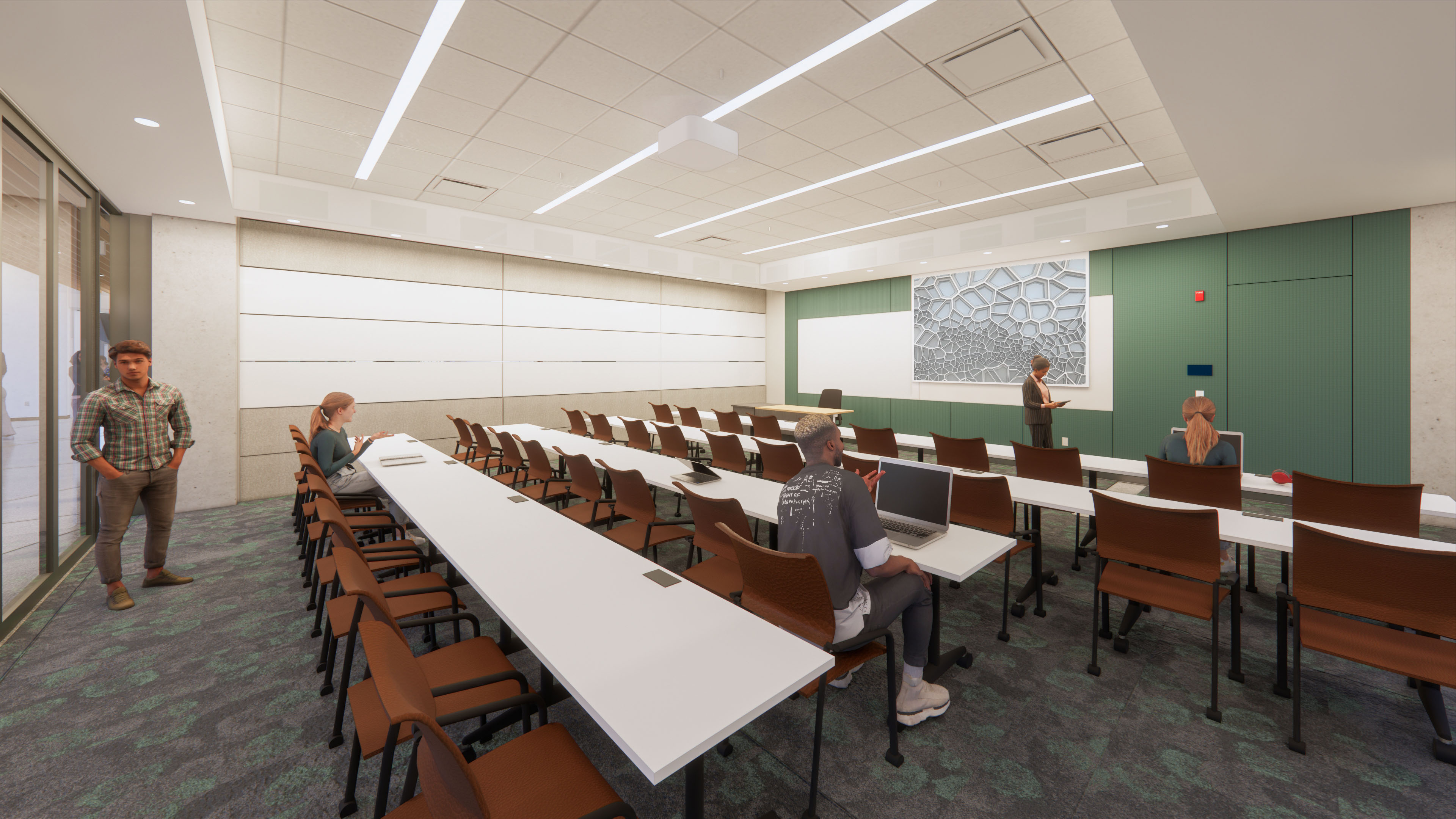 The design takes advantage of north light by positioning the research labs on the north with full glass exposure. The student commons opens to the west taking advantage of the lush pond environment with a multi-story glass volume. There will be modern classrooms and teaching laboratories including a 120 seat-active learning lecture hall.