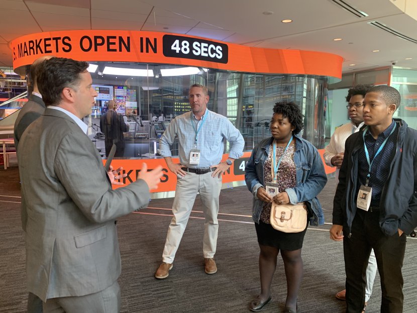 Tanner Fellows speak with tour guides Bloomberg Tour