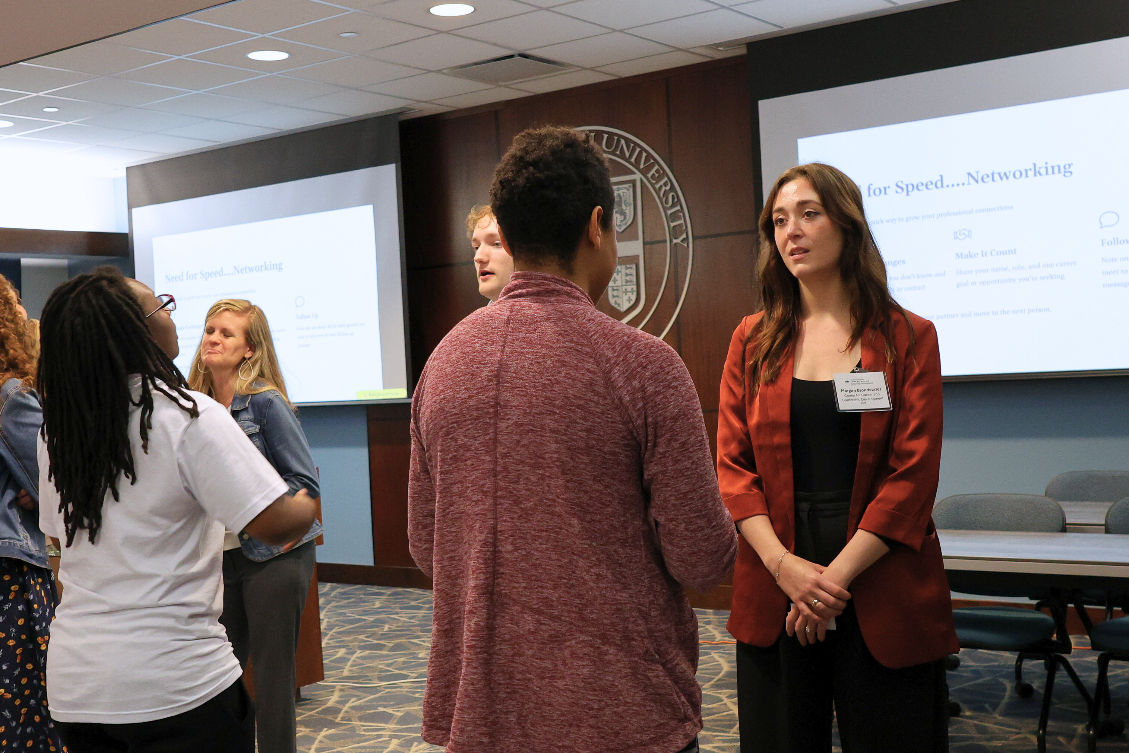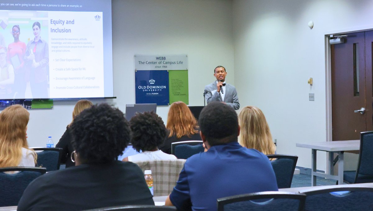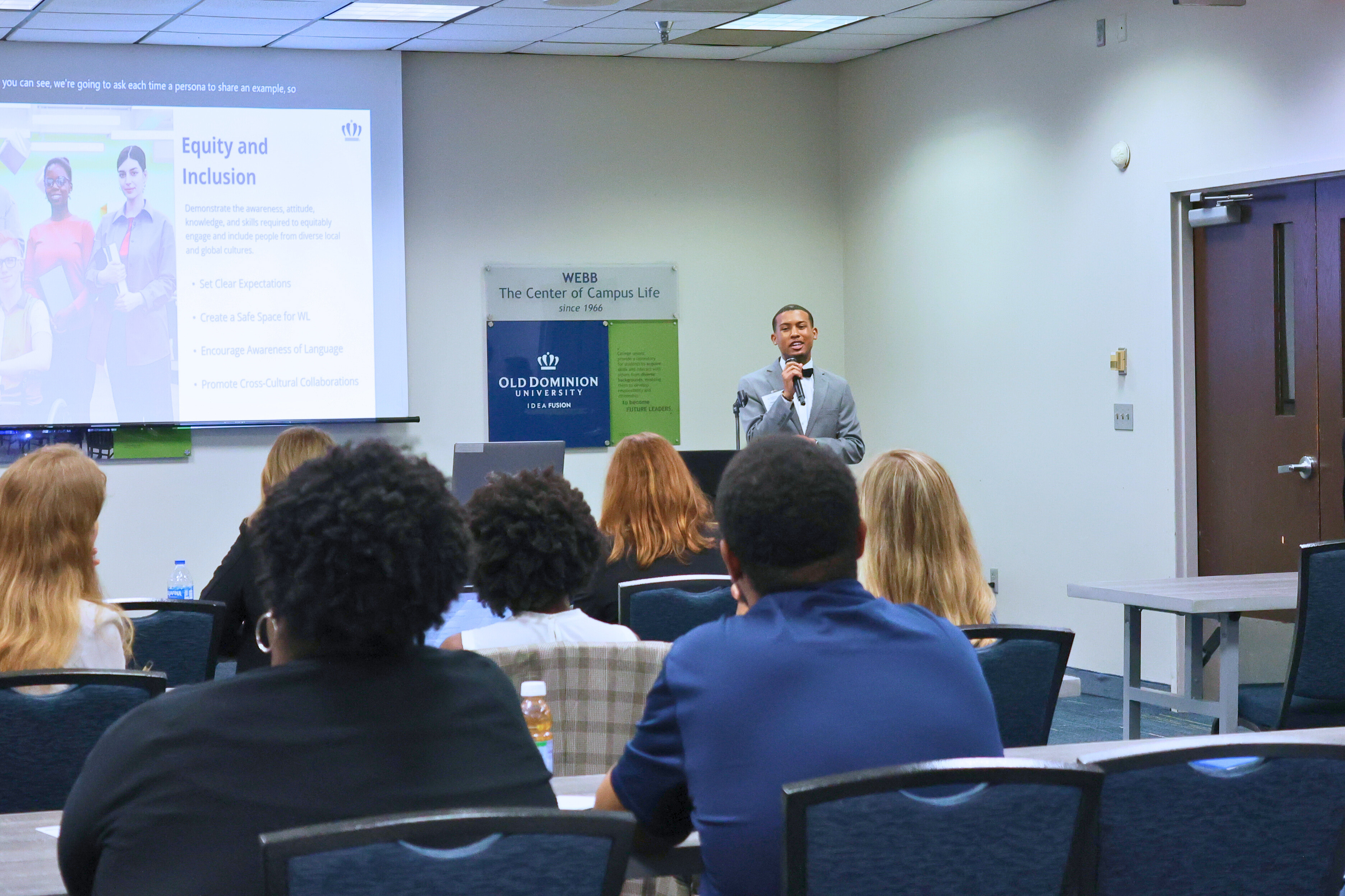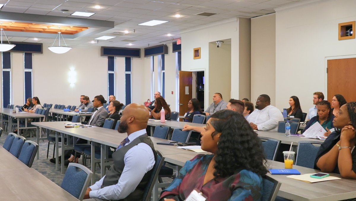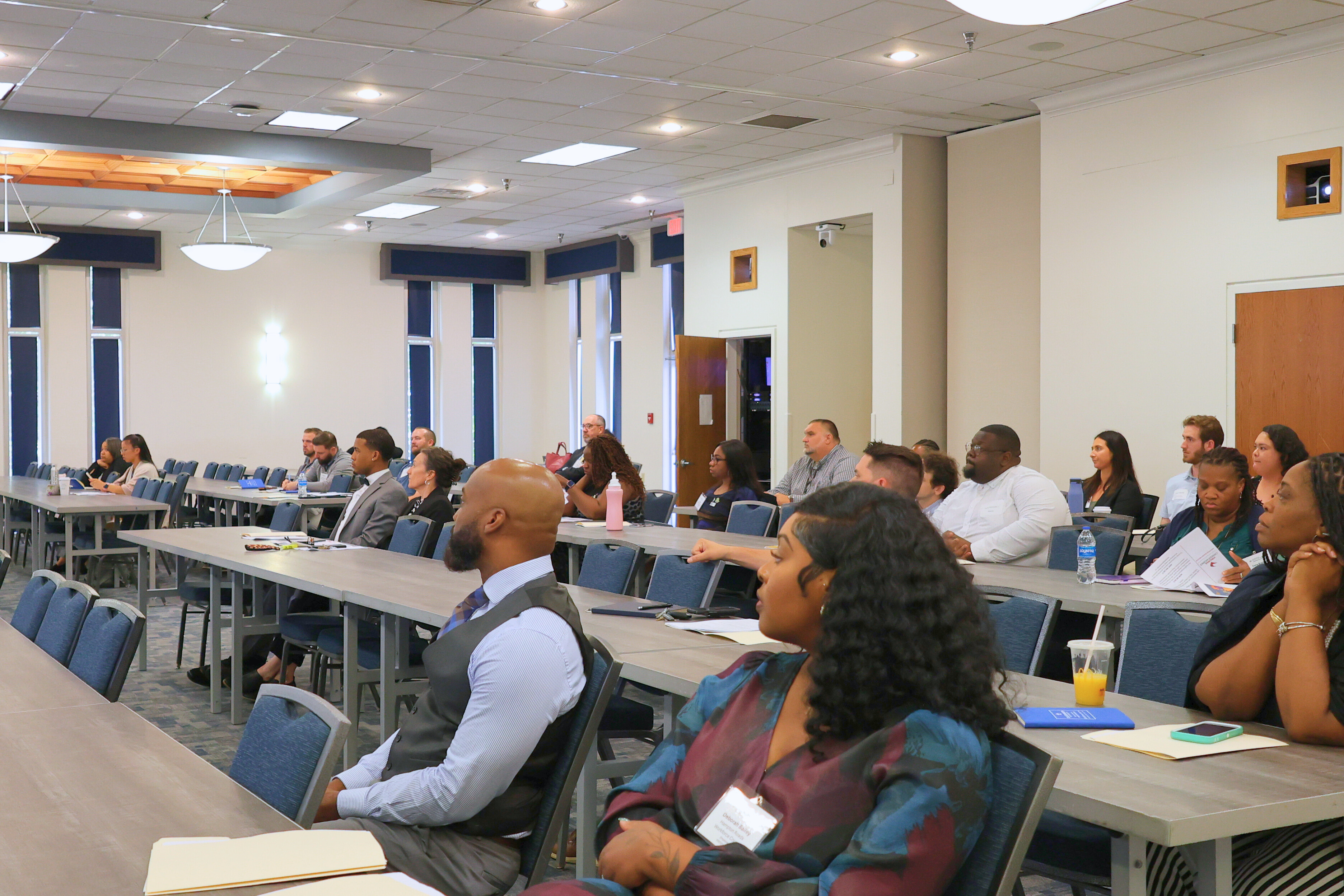 Attendees of the 2025 ODU Career Summit listening to the session sitting in chairs.