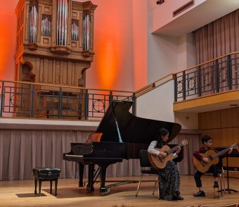 No chewing gum. Food or drinks are prohibited in the recital hall.