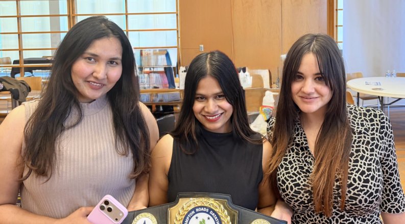 Graduate students Quhura Fathima and Reema Mahabooba from Old Dominion University’s Department of Computer Science, along with their teammate Kamelia Marchand-Vaudrin, an undergraduate student from the Data Science Department, won first place at the 2025 Hampton Roads Datathon, hosted by the City of Norfolk.