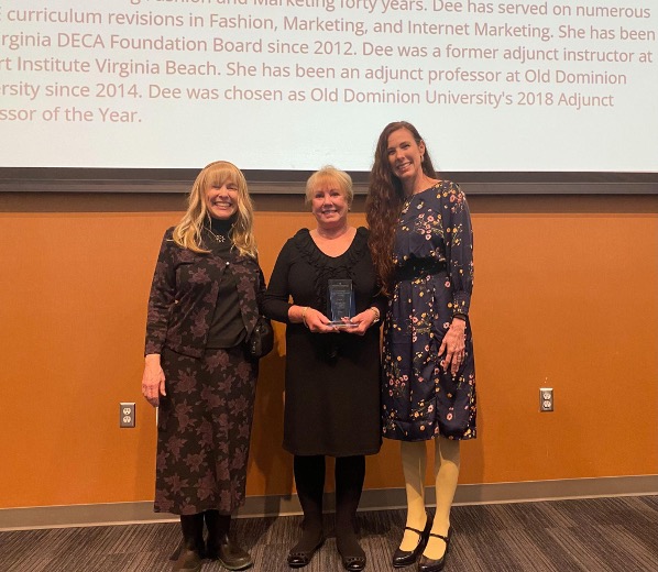 - Outstanding Adjunct Award: Dee Hamlet, an adjunct professor with a rich background in Fashion Merchandising and Education, was celebrated for her excellence in teaching. With a career spanning over forty years, including numerous curriculum revisions and contributions to DECA, Hamlet's impact on students and the community is profound.