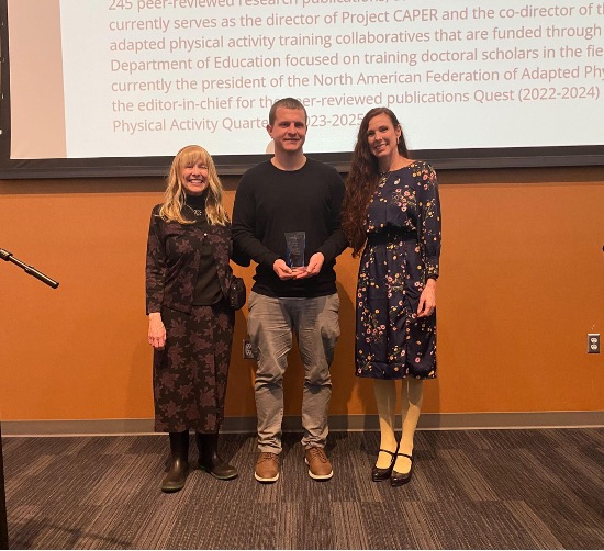 - Publications Award: Dr. Justin Haegele, Professor and the Director of the Center for Movement Health & Disability, was honored for his outstanding scholarly publications. With over 245 peer-reviewed research publications, Dr. Haegele's work significantly contributes to the field of adapted physical activity, particularly concerning the physical activity participation of disabled individuals.