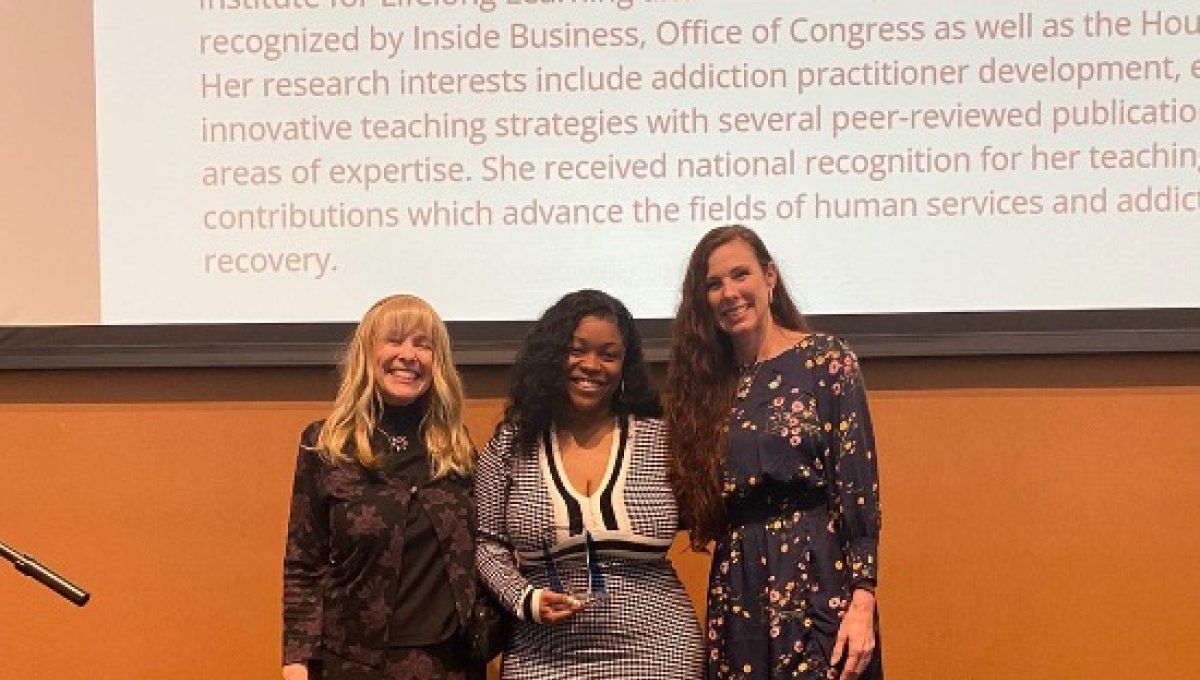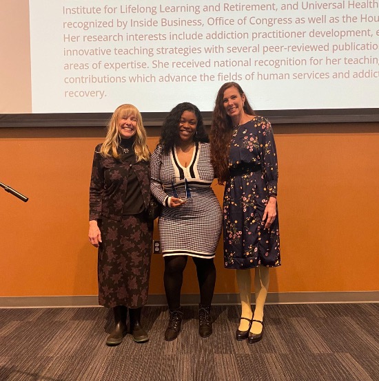- Service Award: Dr. Chaniece Winfield, Assistant Professor of Human Services, was recognized for her exemplary service contributions. With over 16 years of experience in the behavioral health field, Dr. Winfield's collaborations have been instrumental in advancing the fields of human services and addiction treatment.