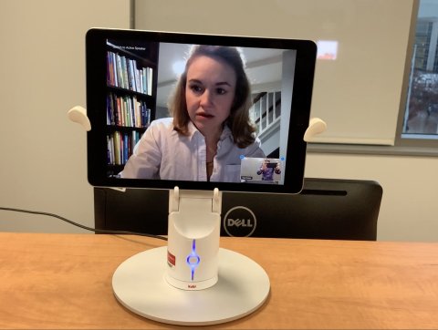 Access the table-top telepresence robot for small group discussions and large group meetings.