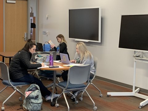 Utilize study spaces for individual or collaborative group work. Chromebooks, iPADS, laptops, and other equipment are available for in room checkout.