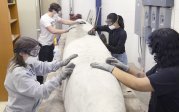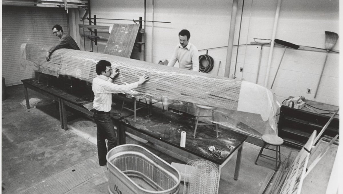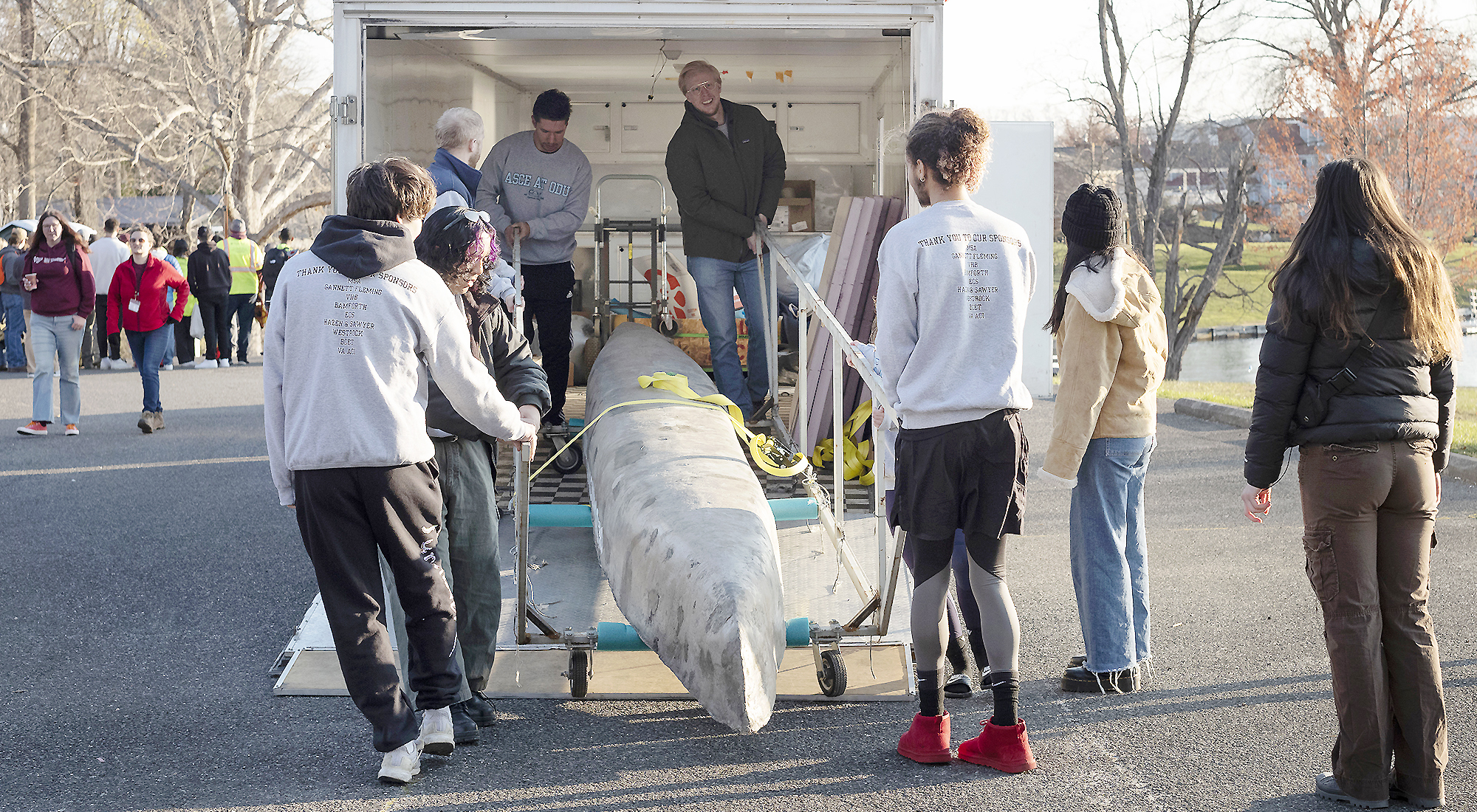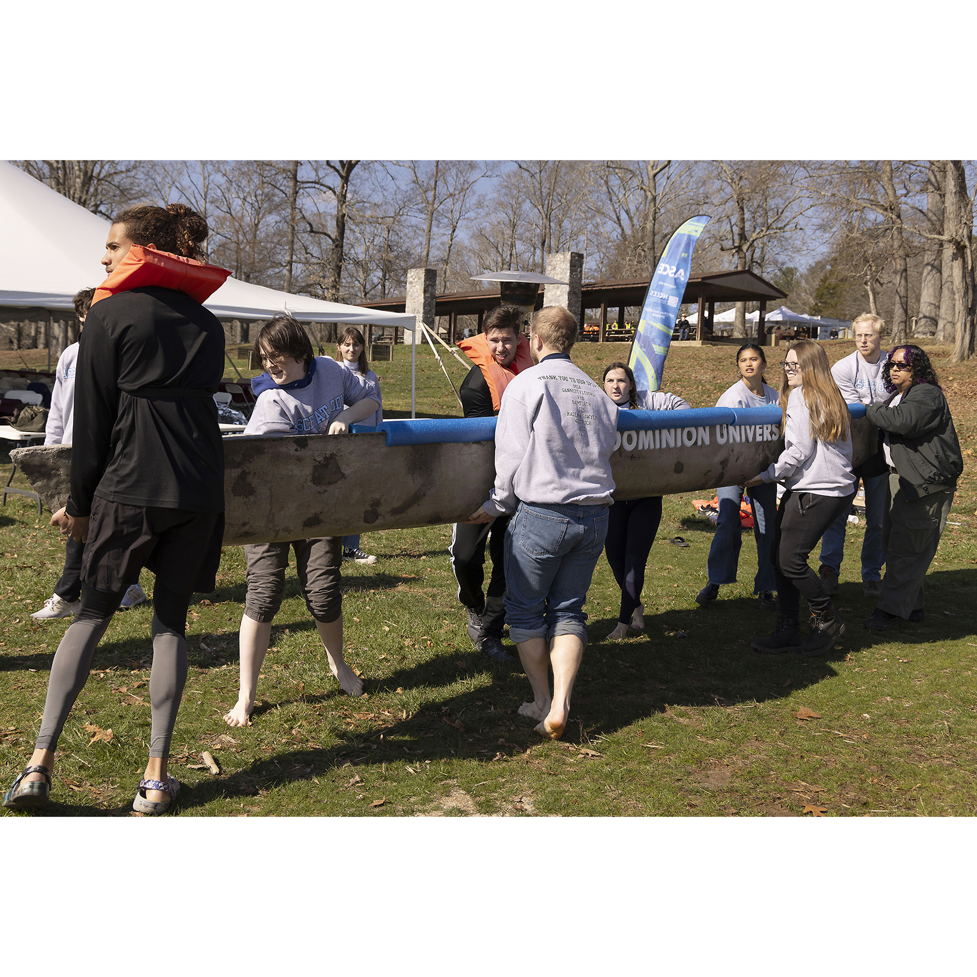 Each year, ODU’s American Society of Civil Engineers (ASCE) Concrete Canoe Team designs and builds a 20-foot canoe made entirely of concrete. After pouring and molding the structure, students refine and sand the hull until it is ready for competition.