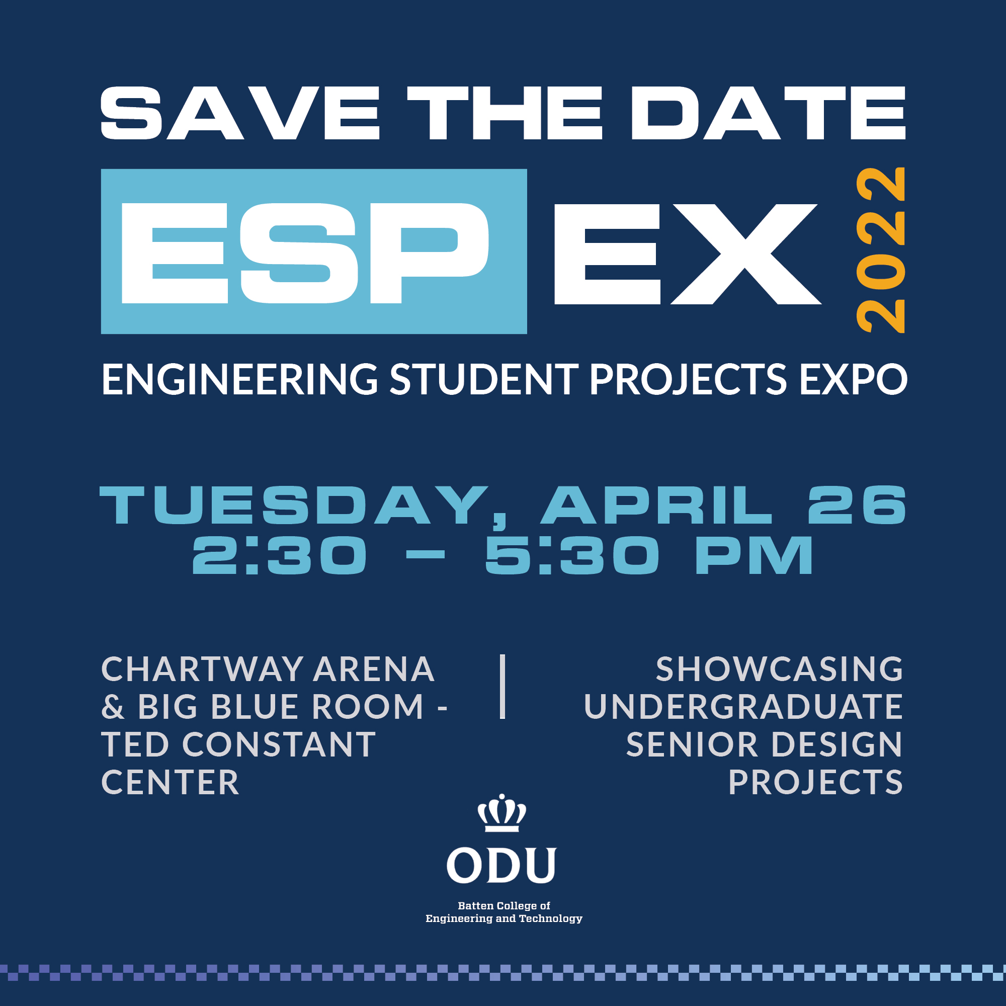 Breadcrumb Home Batten College of Engineering and Technology Save The Date: ESPEX (Engineering Student Projects Expo) Save the Date: ESPEX (Engineering Student Projects Expo) February 21, 2022 share