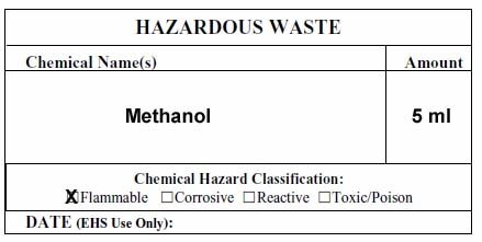 - Do not mark in the DATE area, EH&S will date the material on pick-up.