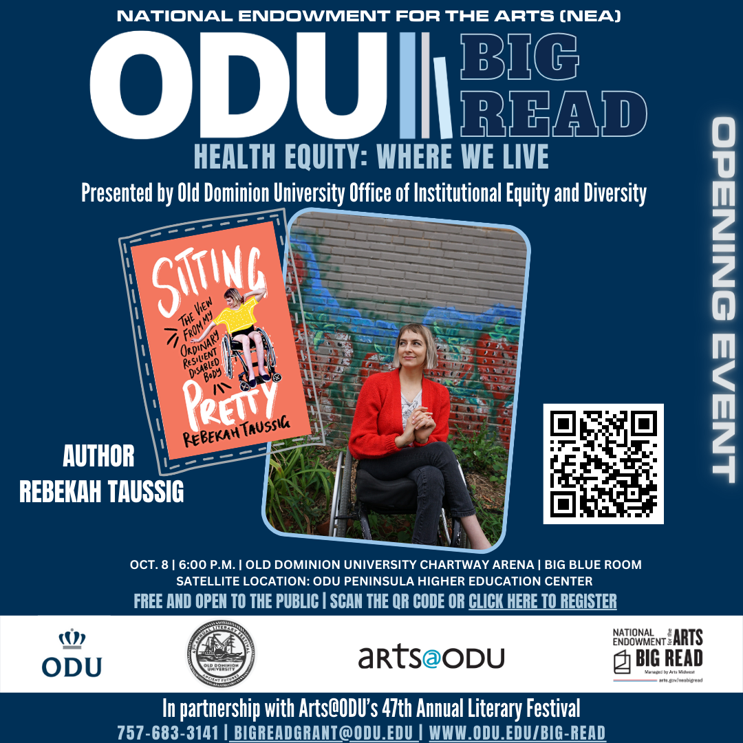 Embark on a literary journey of empowerment and enlightenment as the Old Dominion University Office of Institutional Equity and Diversity kicks off its NEA Big Read initiative “Health Equity: Where We Live” in partnership with the 47th Annual Literary Festival: Ancient Futures. Join us for an inspiring evening with Rebekah Taussig, author of "Sitting Pretty: The View from My Ordinary Resilient Disabled Body" as she explores Transforming the Patient Experience.