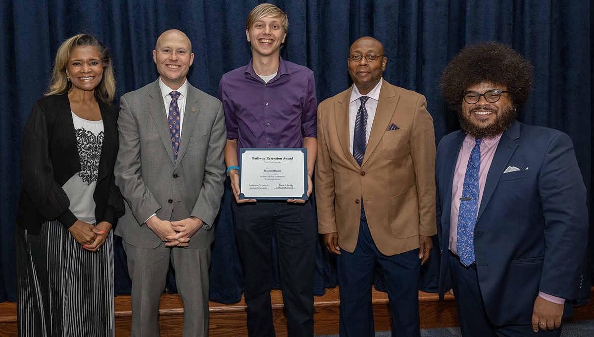 Blaizen Bloom, center, accepts the 2023 Pathway Retention Award.