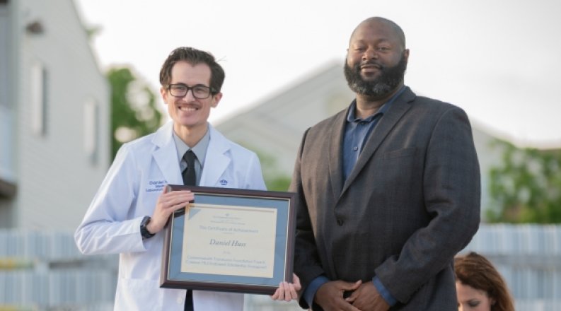Geoffrey Coleman, son of the late Dr. Faye Coleman, presented the inaugural CTF Faye E. Coleman MLS Endowed Scholarship to Daniel Huss. Faye Coleman spent 40 years of her career at ODU and transformed the medical laboratory science program when she was program director by implementing an innovative approach to internships, which led to lab simulations utilized today. She also initiated the degree completion program for working laboratory technicians.