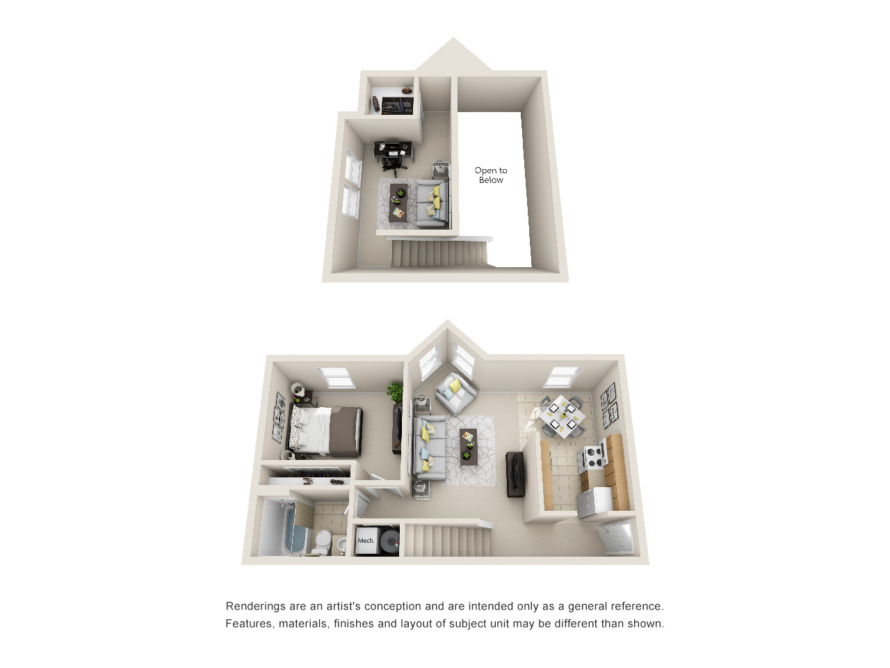 | 1 Bedroom Loft | $1460 | 728 sq. ft | |