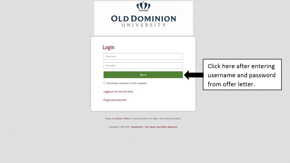 - If you experience trouble logging into the system, please contact your recruiter or the Department of Human Resources at 757-683-3042.