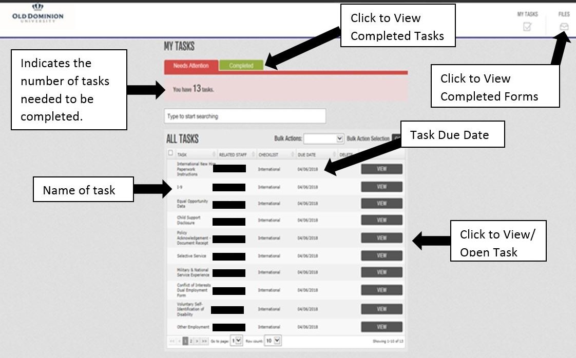 - From this screen, you can complete tasks, view completed items, and view files in your personnel folder.