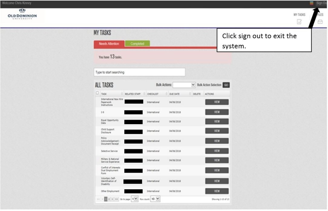 - From any screen, click "Sign Out" on the top right of the screen to log out of the system.
