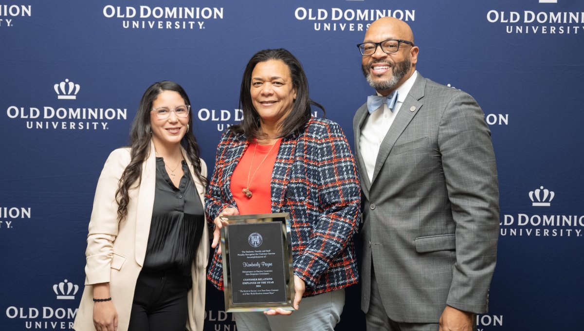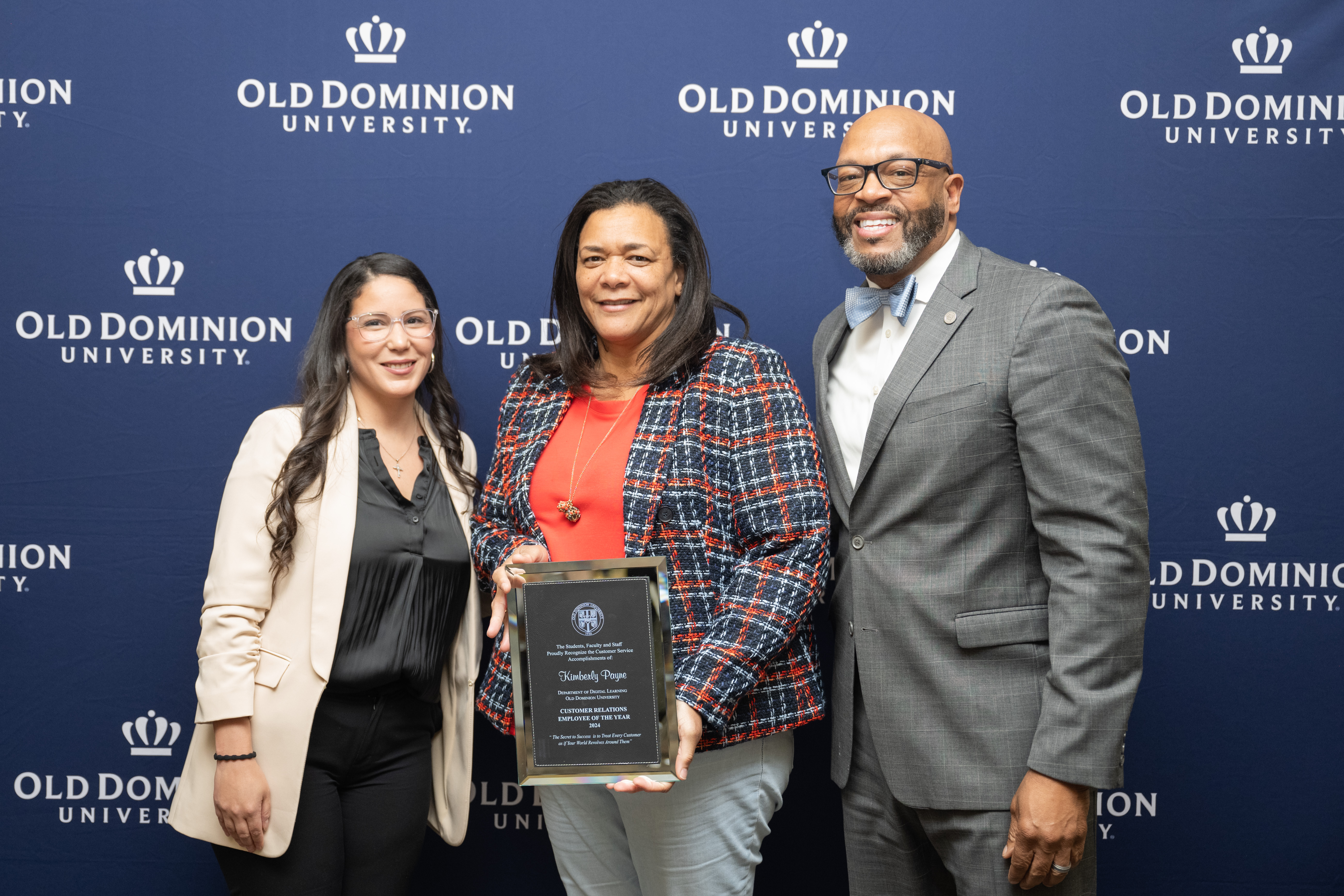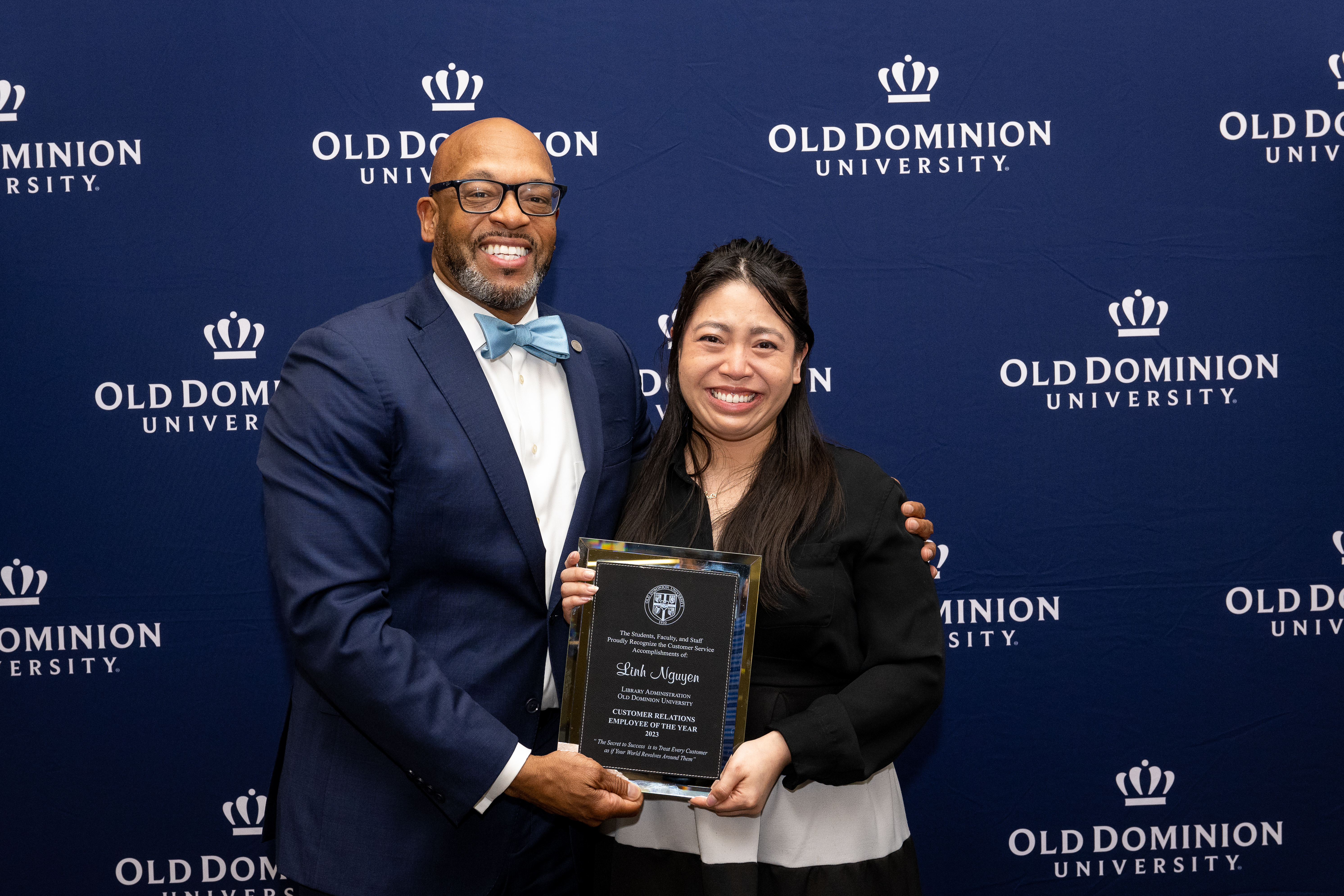 The Customer Relations Employee of the Year Award Program is sponsored by the Division of Talent Management and Culture (TMC) and was established to recognize and reward the individual who best exemplifies the University's commitment to deliver positive customer relations service; to direct attention to the employee's contribution to enhancing the image of Old Dominion University; and to demonstrate the University's appreciation and acknowledgment of exceptional customer relations performance. The award consists of an engraved plaque, $500 recognition bonus, and three days of recognition leave (if classified).