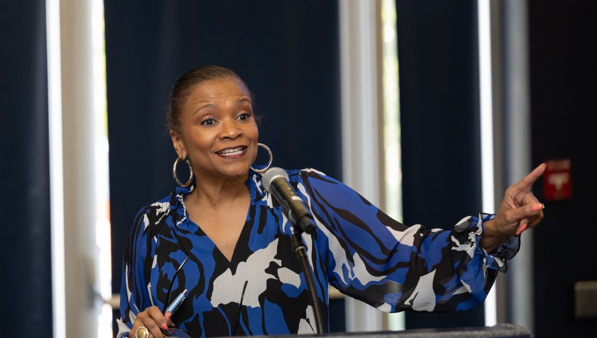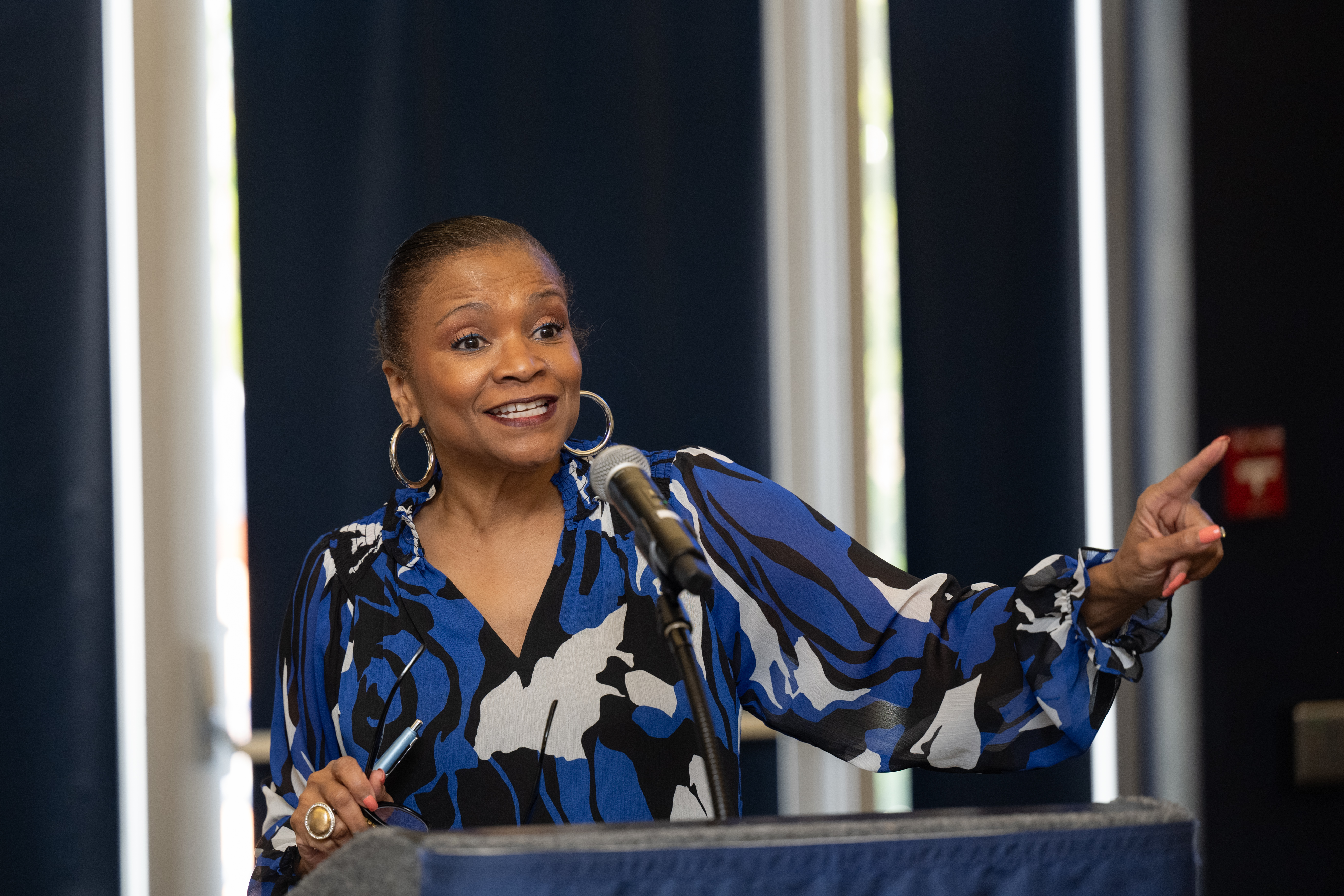 VP September Sanderlin welcomes CREY award nominees at the April 5th luncheon.