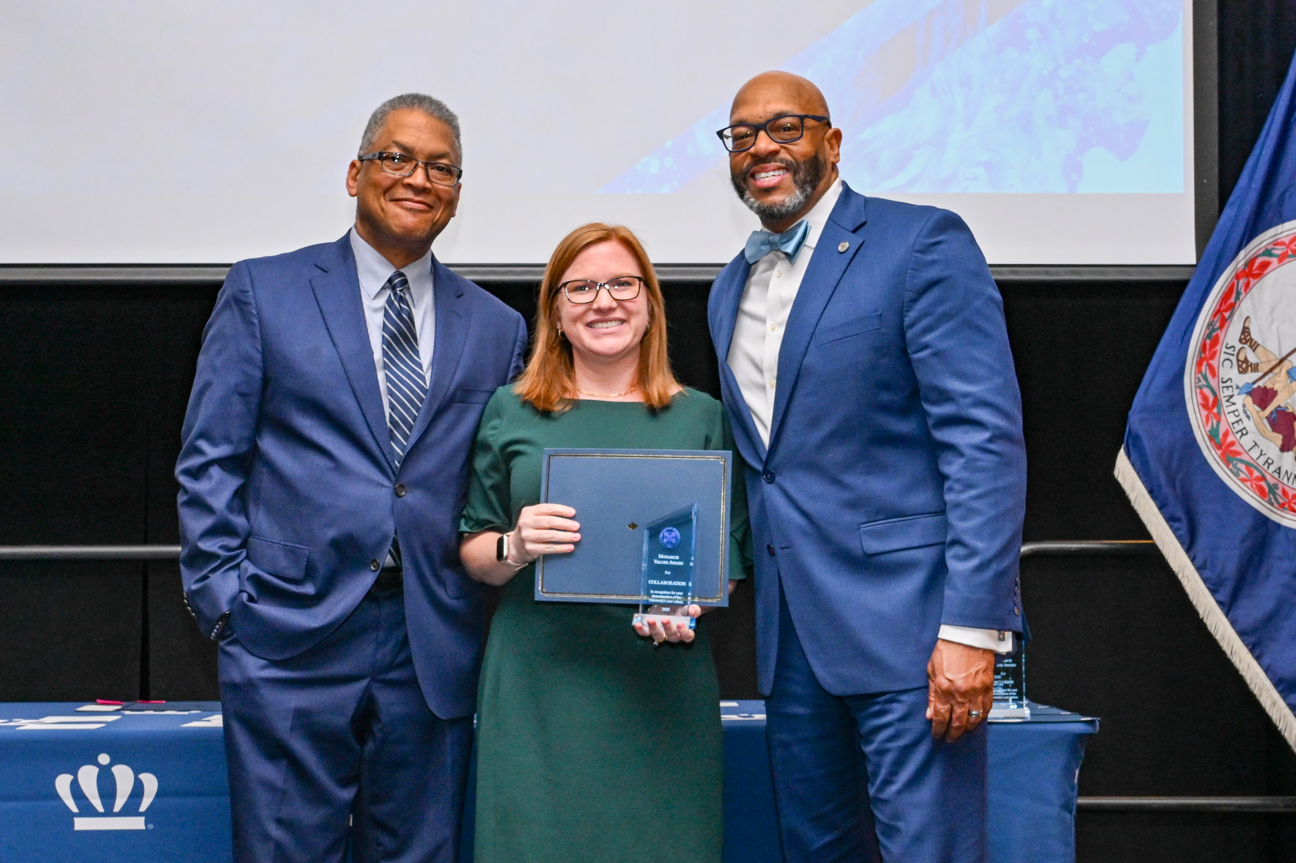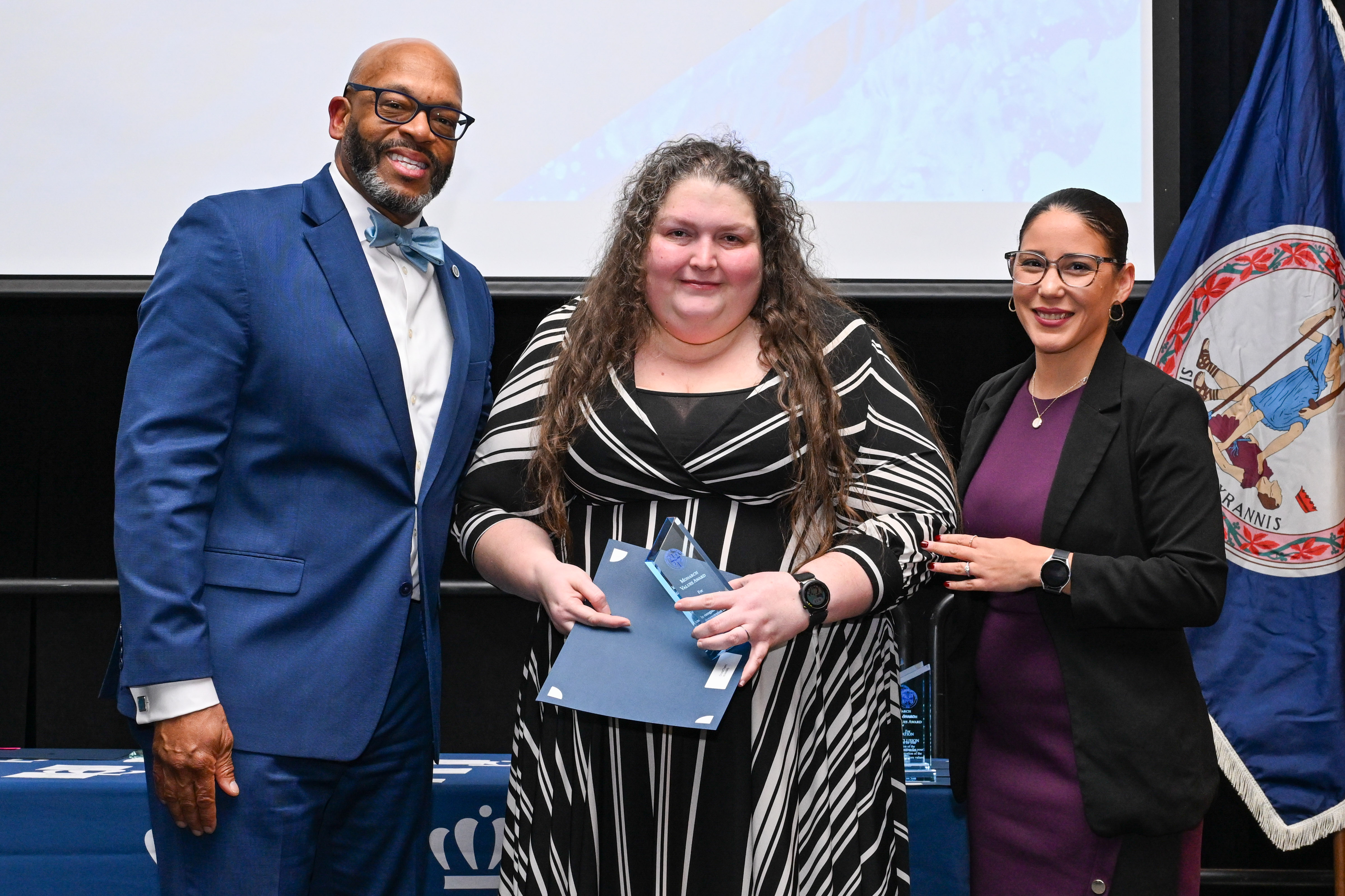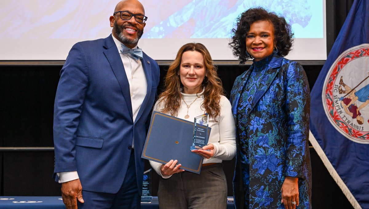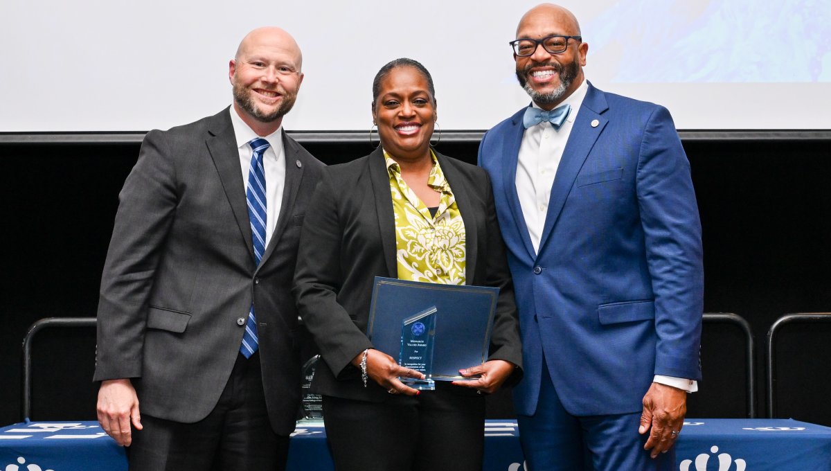 President Brian O. Hemphill and Vice President Alonzo Brandon with Monarch Values Award winner Amber Gwaltney at the Monarch Milestones Celebration on April 10, 2025.