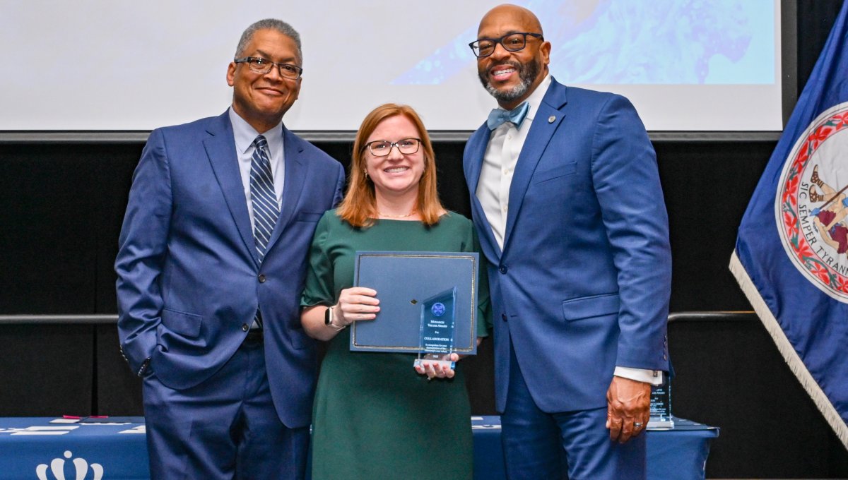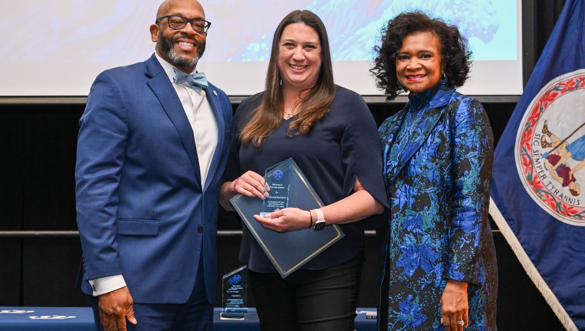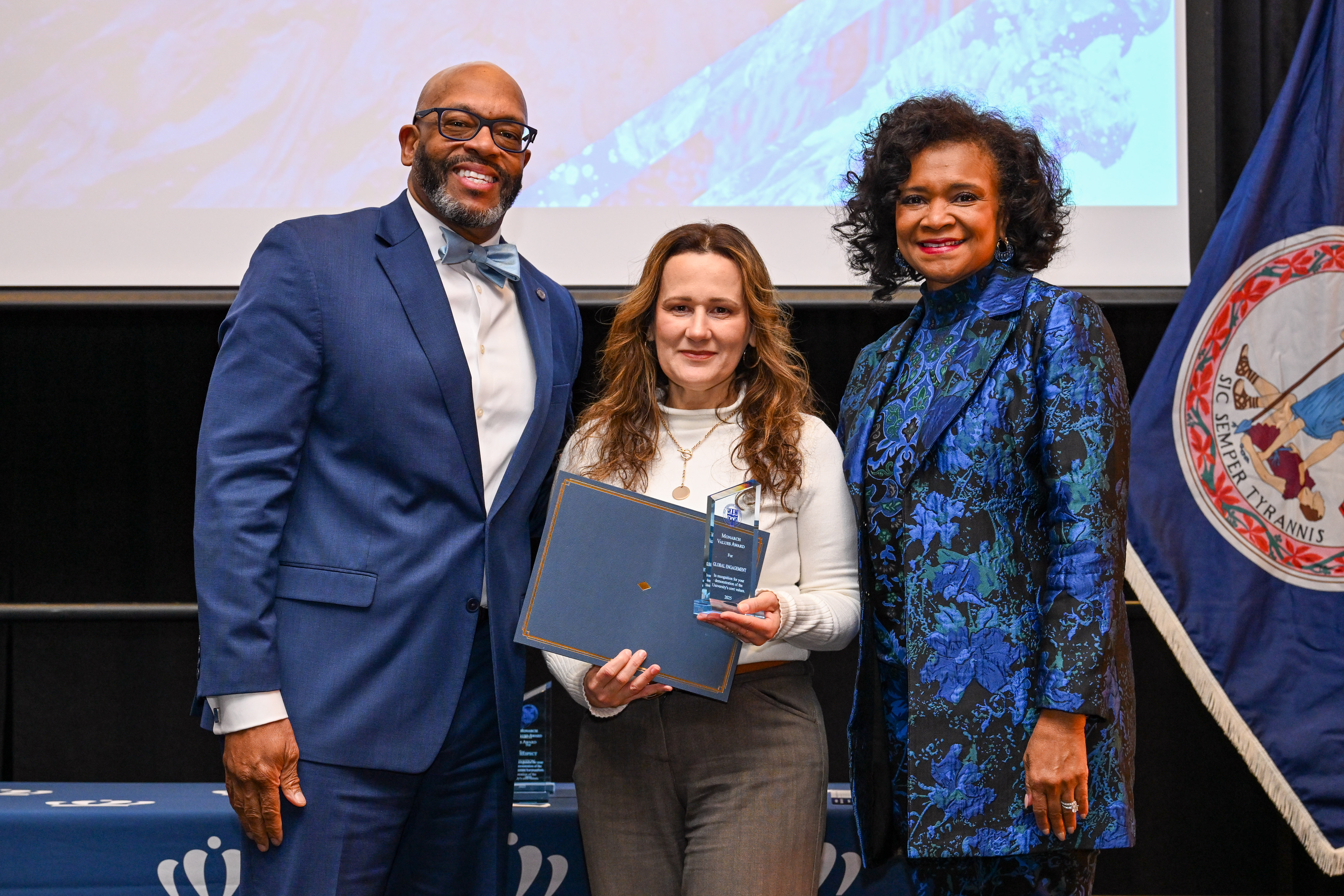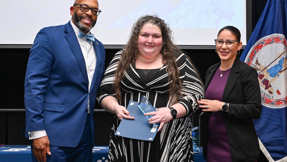 President Brian O. Hemphill and Vice President Alonzo Brandon with Monarch Values Award winner Amber Gwaltney at the Monarch Milestones Celebration on April 10, 2025.