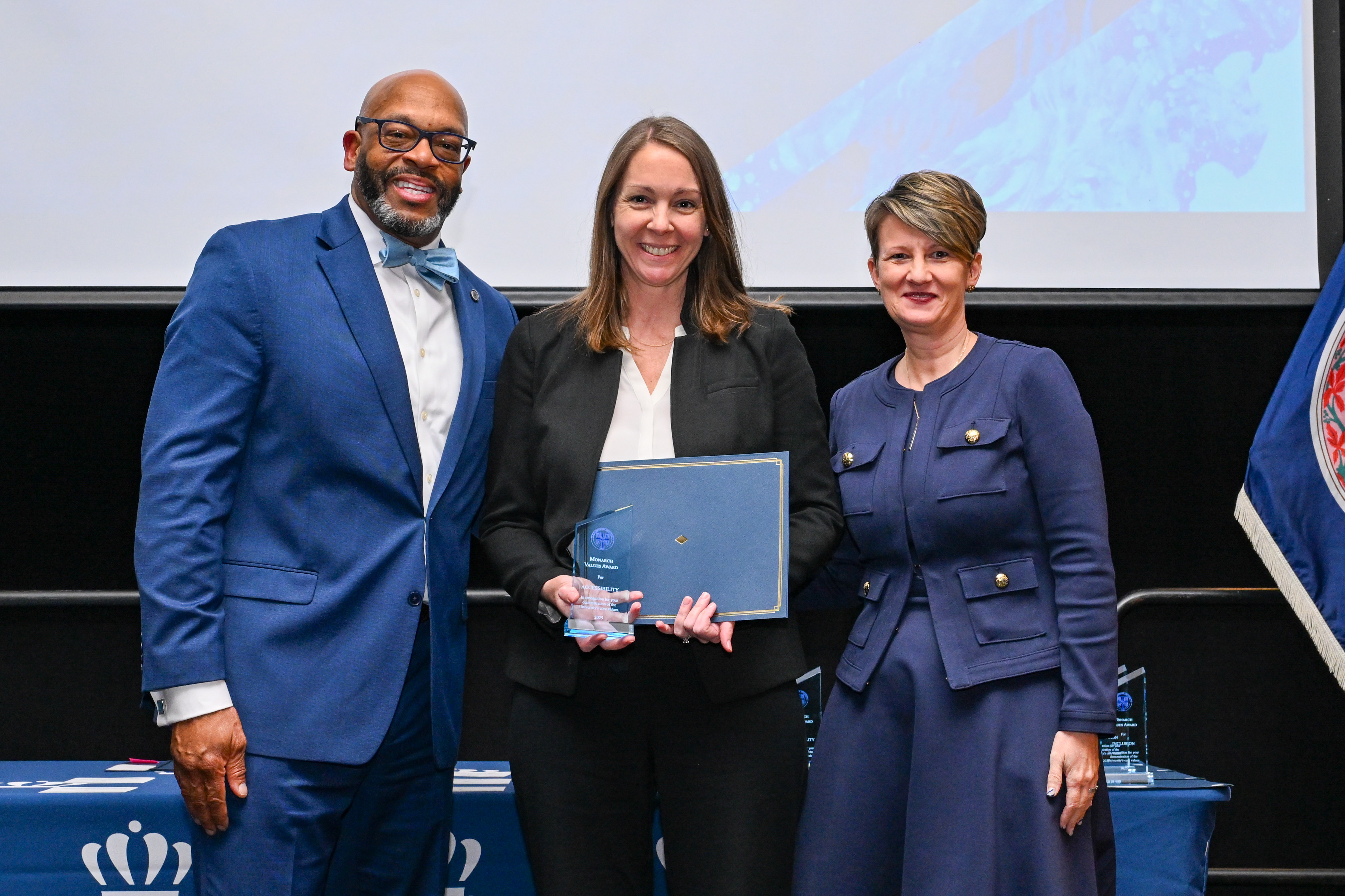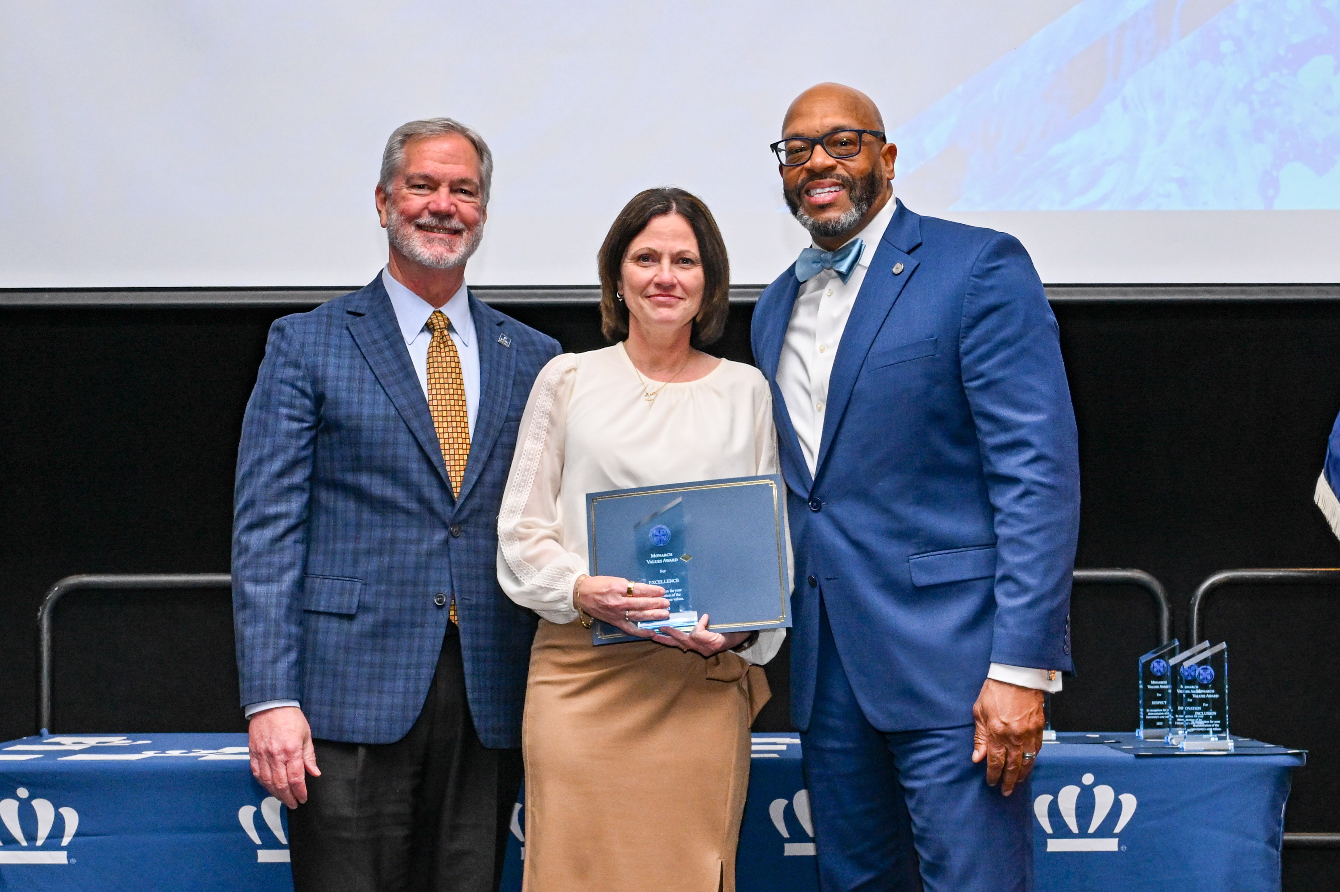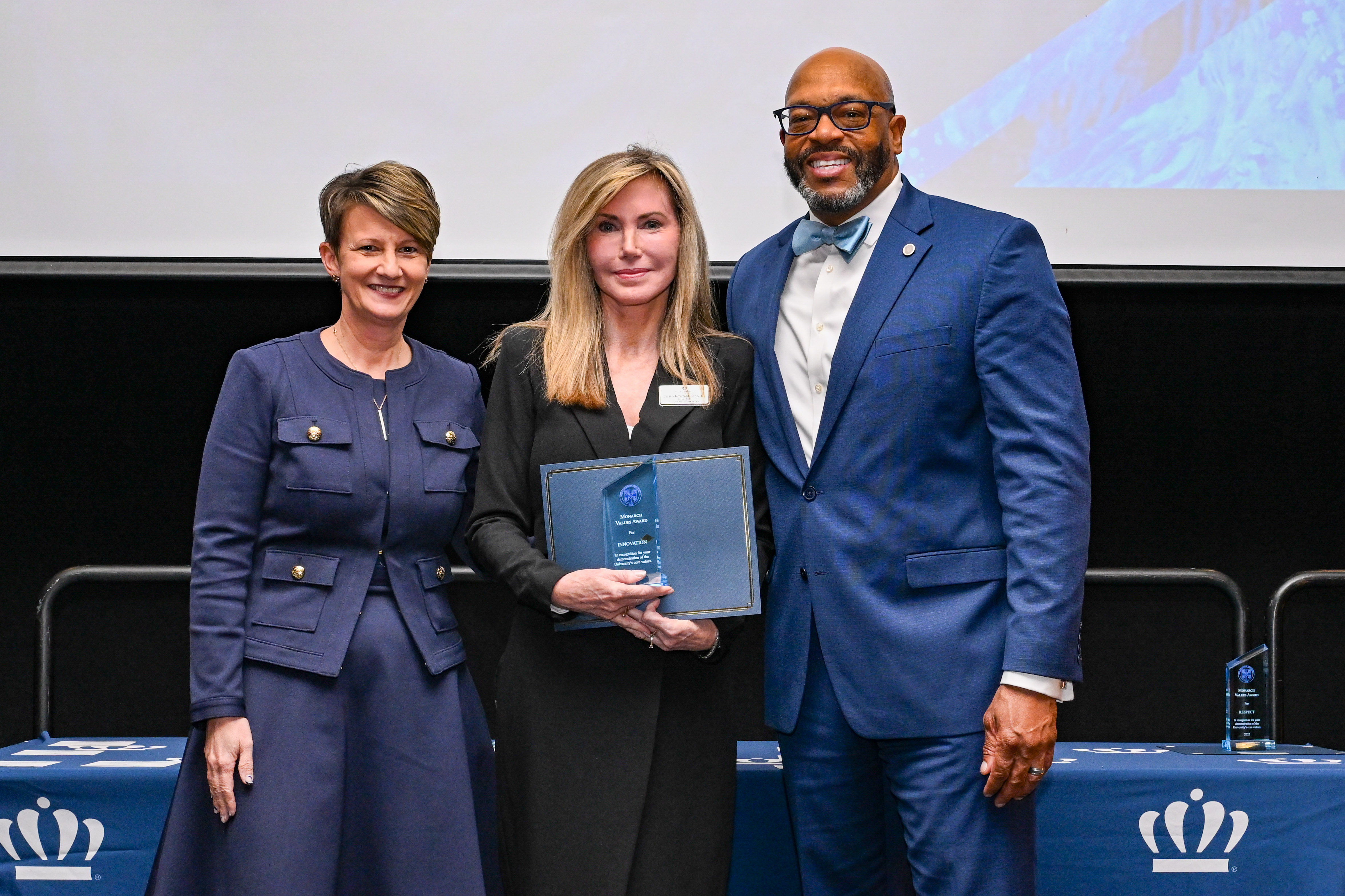 President Brian O. Hemphill and Vice President Brandi Hephner LaBanc with Monarch Values Award winner Dr. Joy Himmel at the Monarch Milestones Celebration on April 10, 2025.