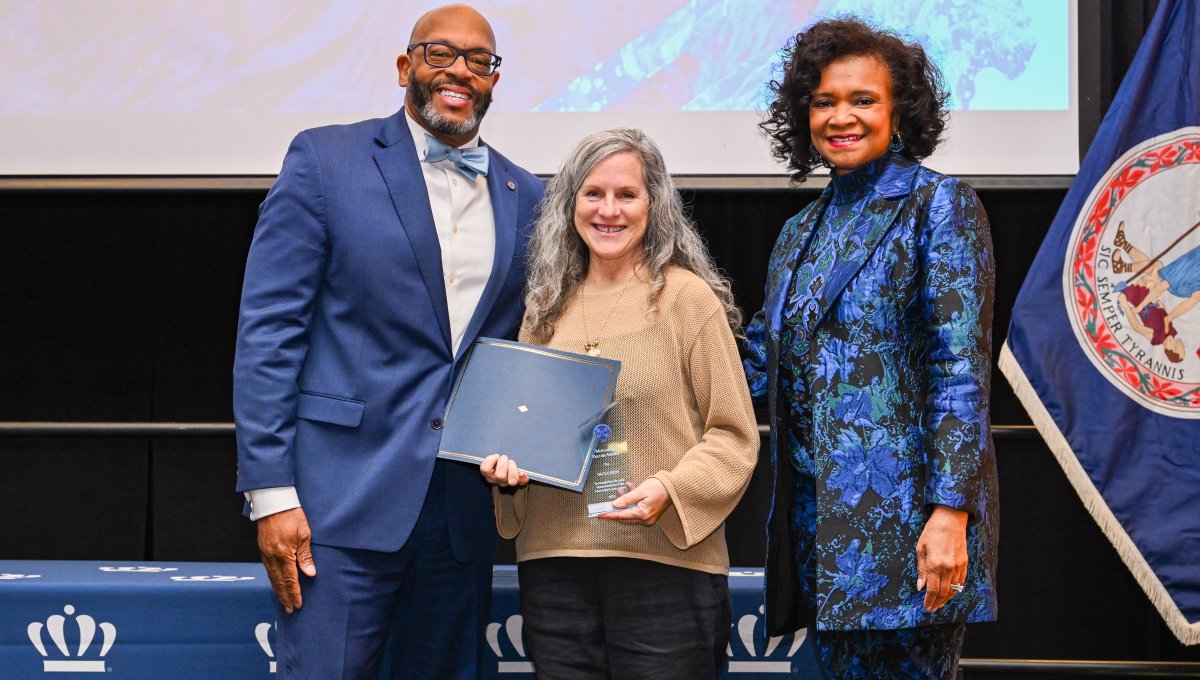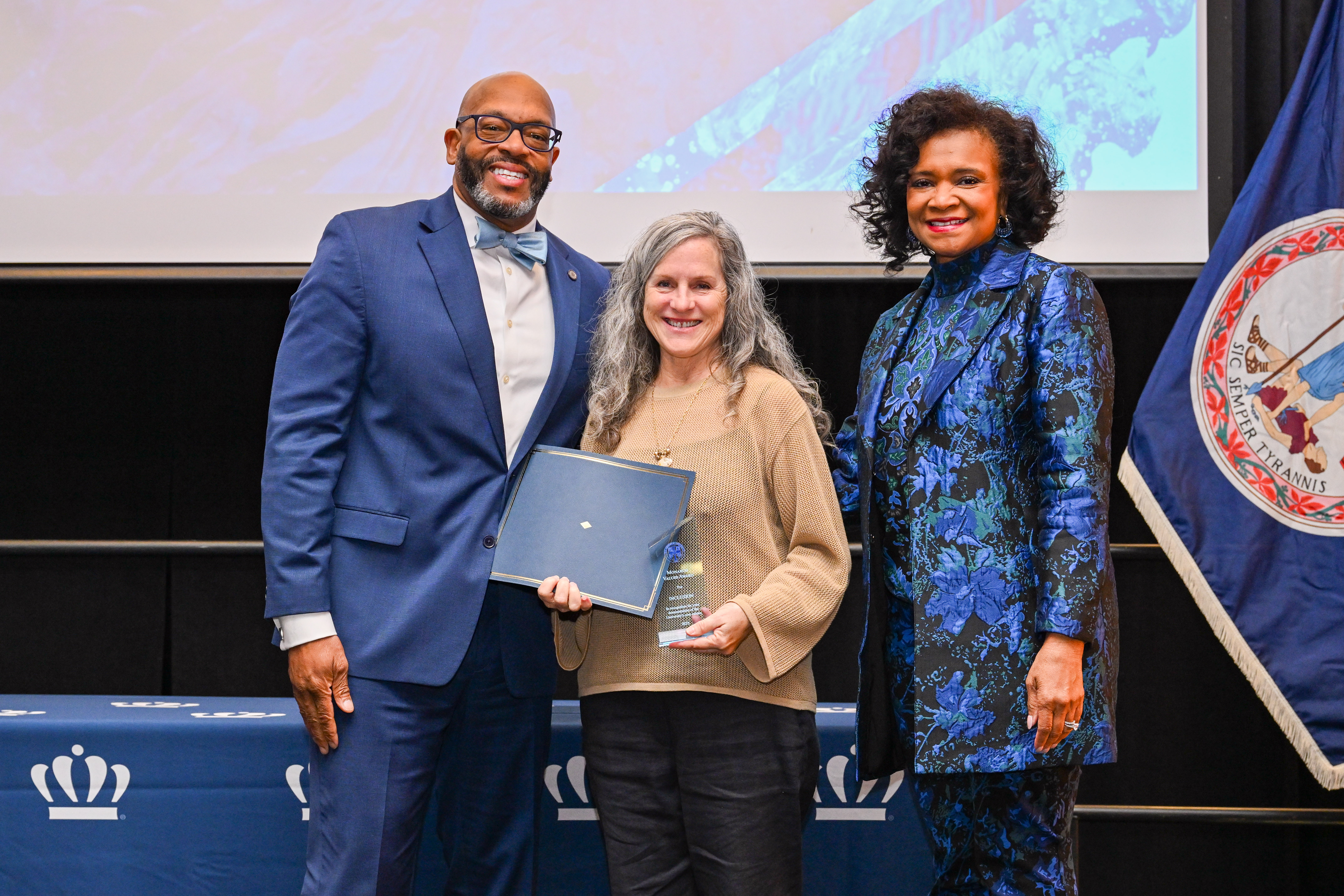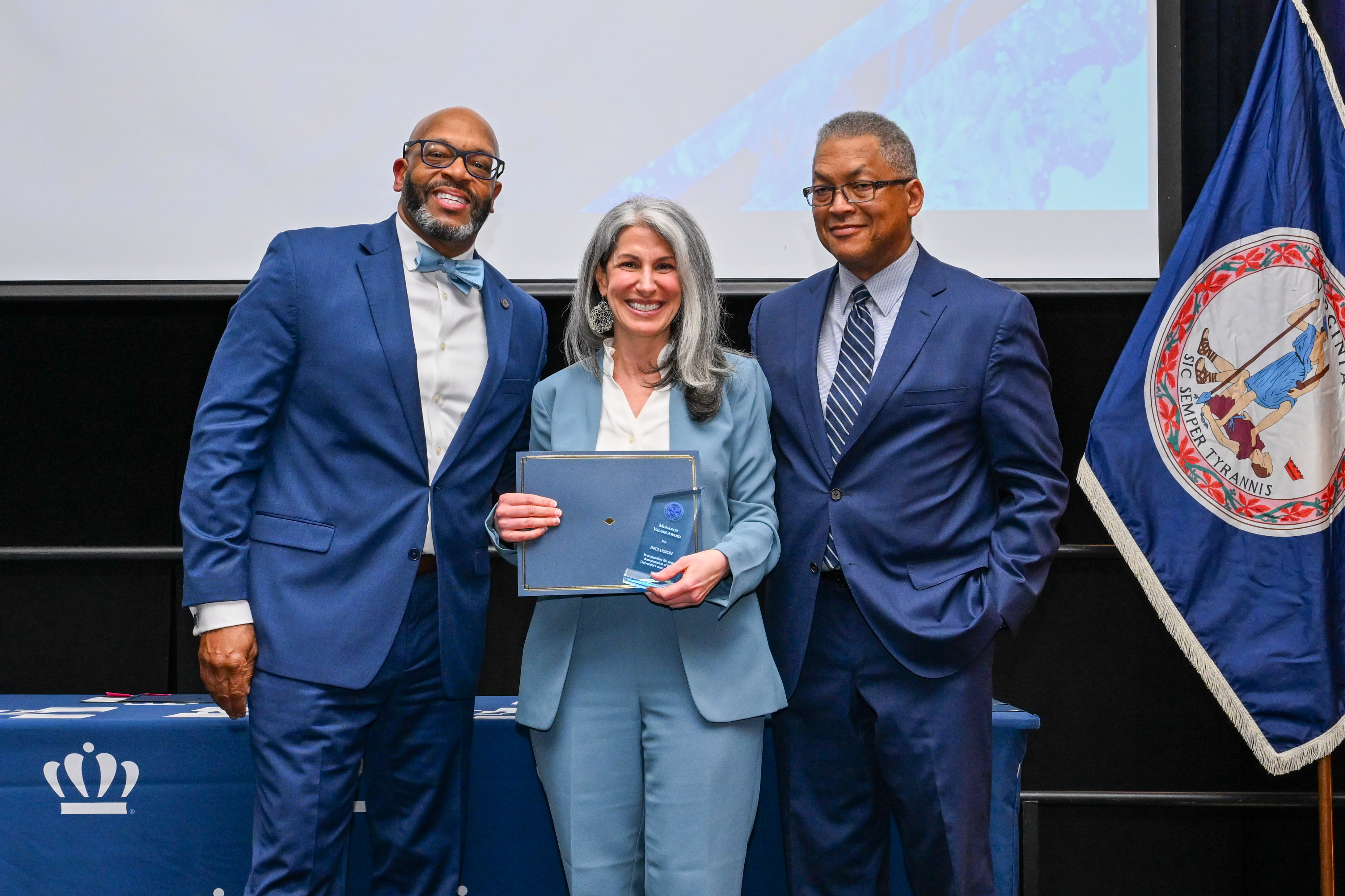 President Brian O. Hemphill and Vice President Brandi Hephner LaBanc with Monarch Values Award winner Dr. Joy Himmel at the Monarch Milestones Celebration on April 10, 2025.