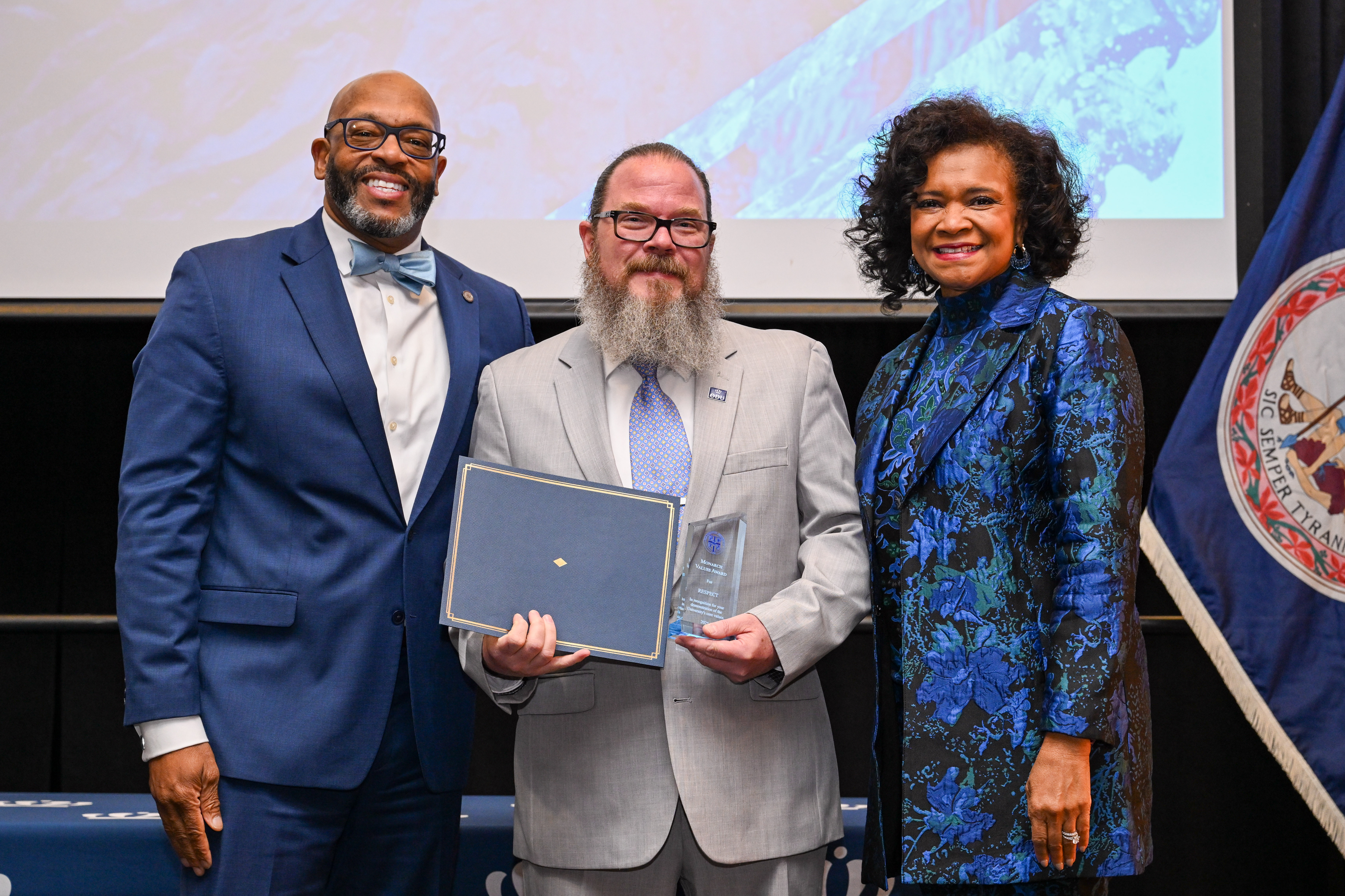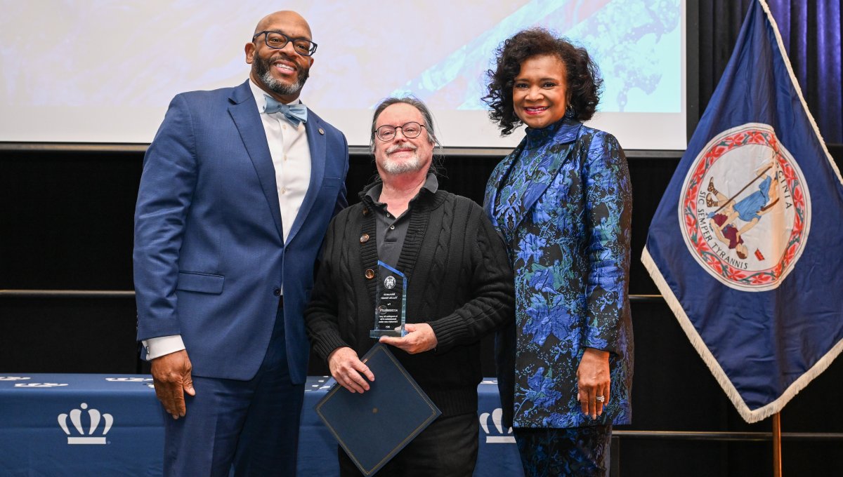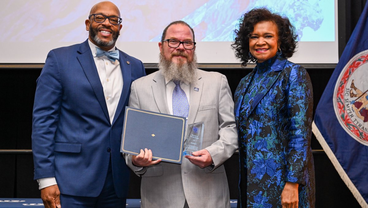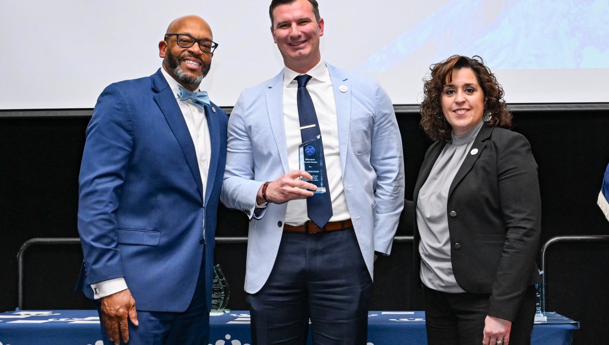 President Brian O. Hemphill and Vice President Kimberly Osborne with Monarch Values Award winner Brian Eubank at the Monarch Milestones Celebration on April 10, 2025.