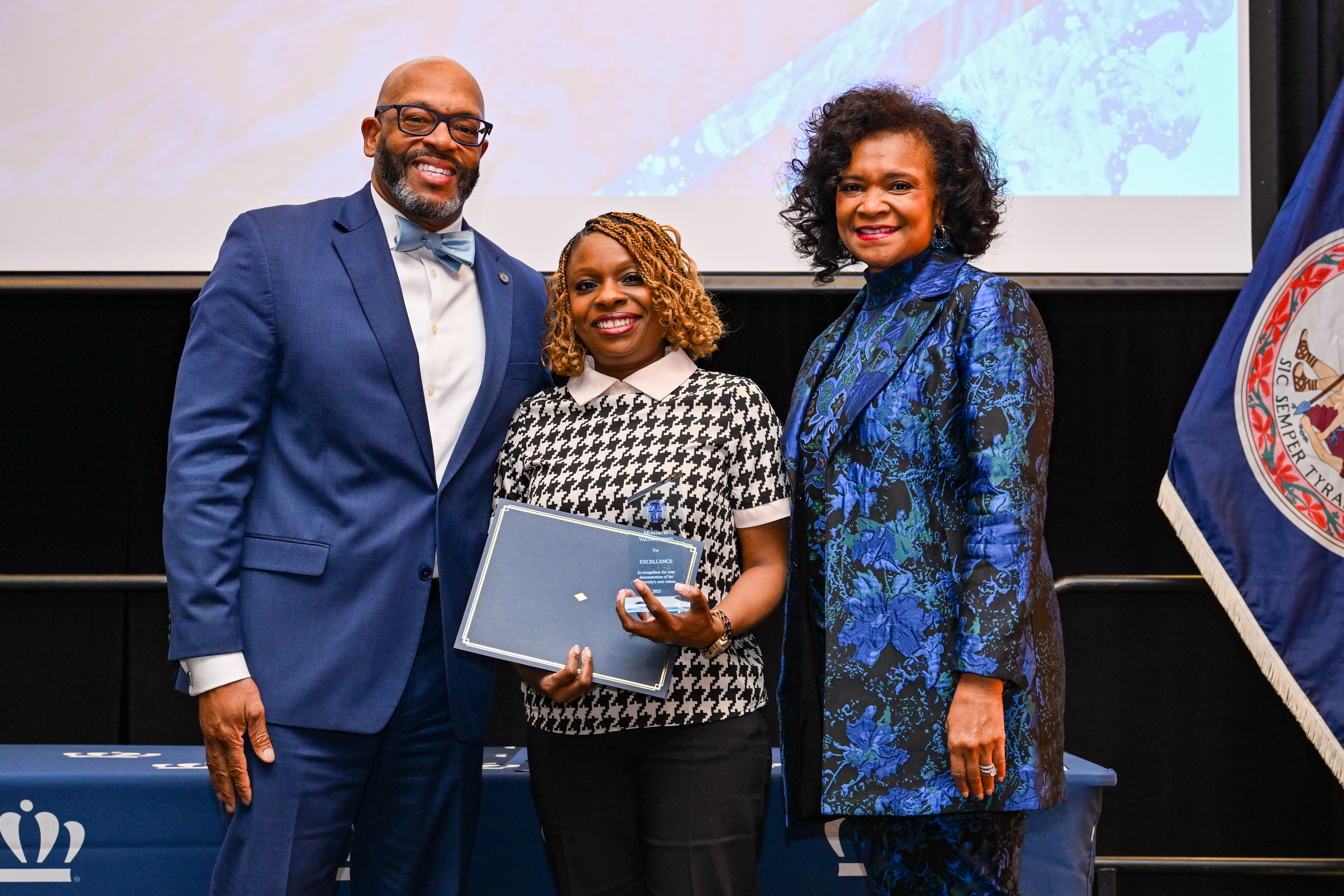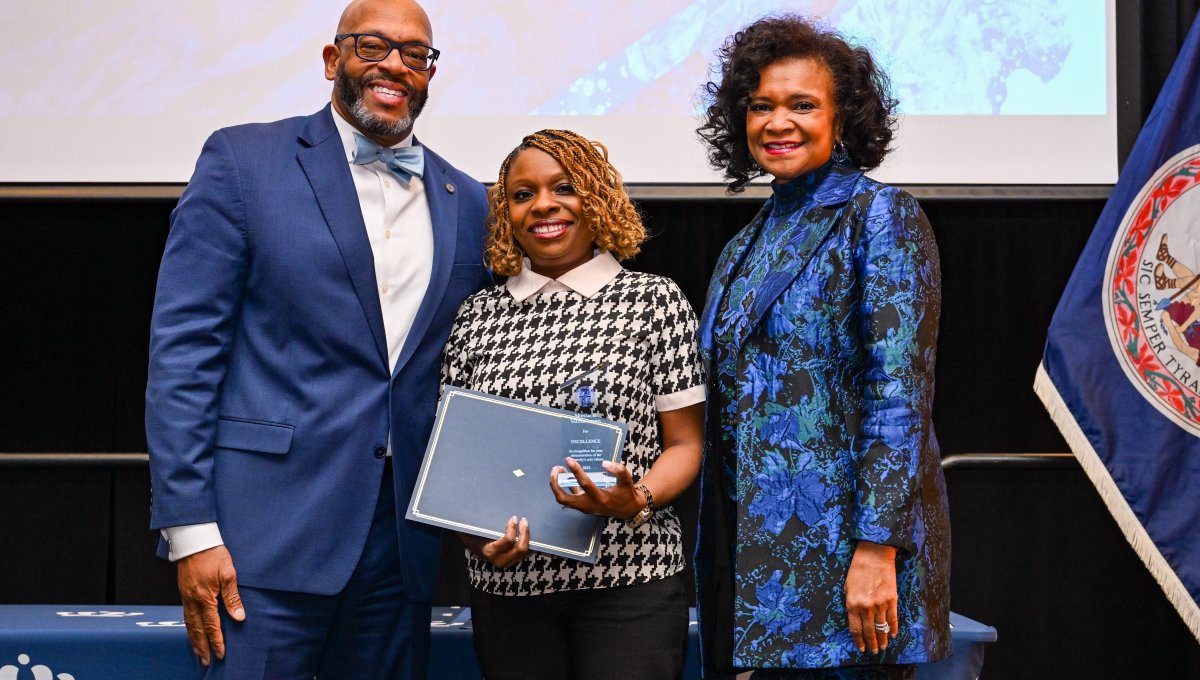 President Brian O. Hemphill and Vice President September Sanderlin with Monarch Values Award winner Ebony Drayton at the Monarch Milestones Celebration on April 10, 2025.