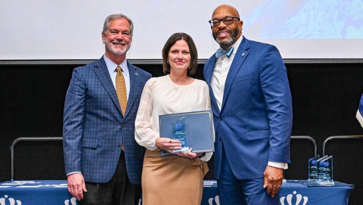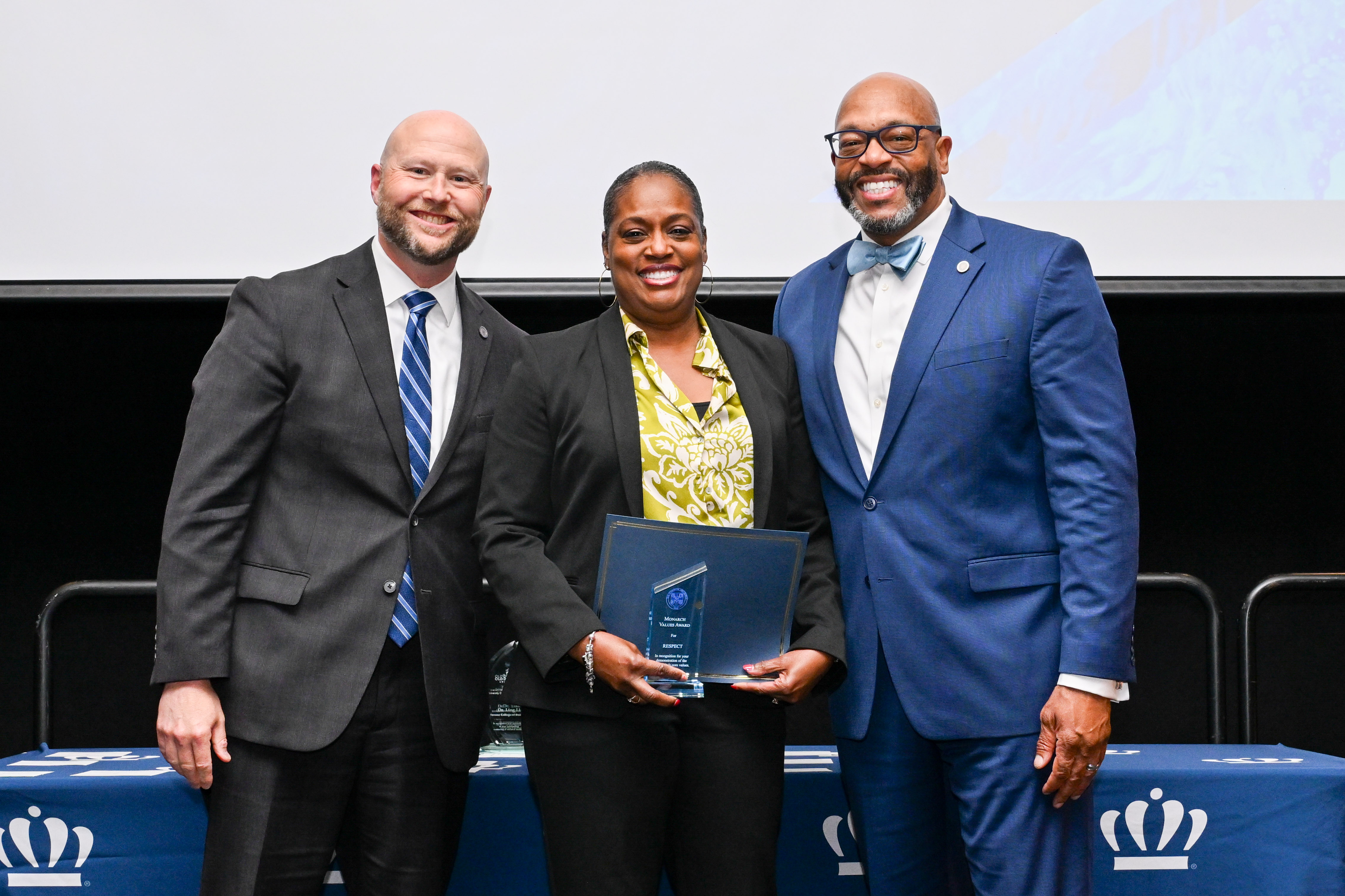 President Brian O. Hemphill and Vice President Kenneth Fridley with Monarch Values Award winner Dr. Shannon Robinson at the Monarch Milestones Celebration on April 10, 2025.