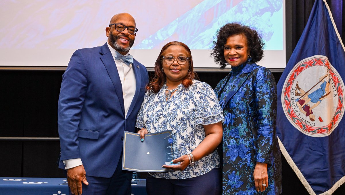 President Brian O. Hemphill and Vice President September Sanderlin with Monarch Values Award winner Terri Hughes at the Monarch Milestones Celebration on April 10, 2025.