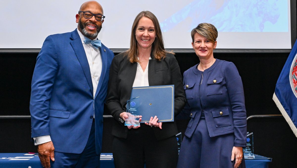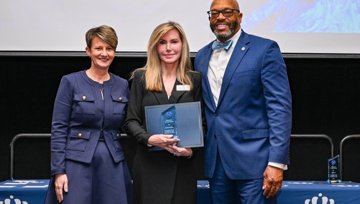 President Brian O. Hemphill and Vice President Nina Rodriguez Gonser with Monarch Values Award winner Chrystal Trapani at the Monarch Milestones Celebration on April 10, 2025.