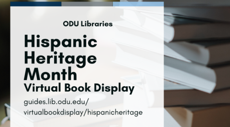 ODU Libraries offer a curated virtual book display to the Monarch community as we recognize Hispanic Heritage Month this September-October! From cultural heritage, art, and history to perspectives on identity and stories of success and resilience, this collection of books and other materials aims to connect the Libraries' services and resources with interests across campus. During this time, the display also serves as a reference and a guide leading toward equity, diversity, and inclusion.