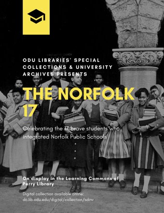 University Libraries invite you to visit our Special Collections exhibit on The Norfolk 17. These 17 Black students were the first to integrate Norfolk Public Schools in February of 1959, and you'll find the exhibit featuring our local history located in the Learning Commons!