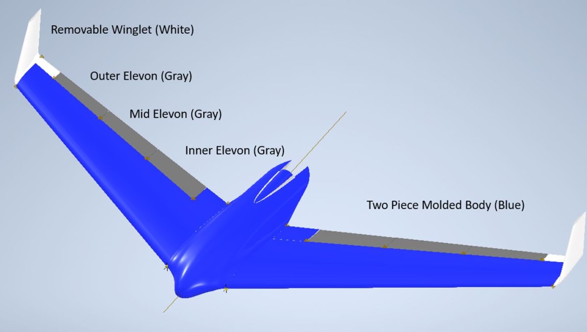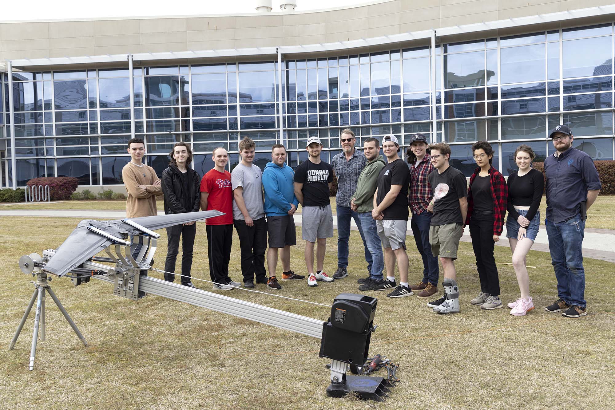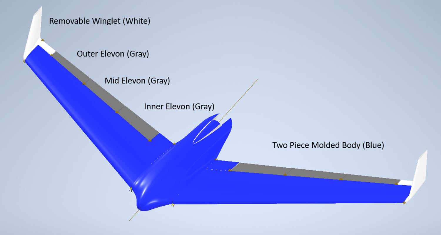 The student capstone project for the 2022-23 school year was sponsored by the well-known UAS company AeroVironment. The scope of the project required assistance from graduate students Rob Stuart and Phil Mantz who led the undergraduates under advisor Dr. Drew Landman to create the Gryphon UAS.  In this project, students were tasked with developing a low-cost, modular, reusable, (non-lethal) platform for swarming (flying multiple aircraft simultaneously) that is easy and quick for a few people to set up, deploy, run a mission, recover, and re-use.