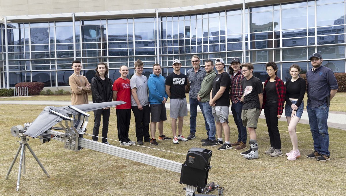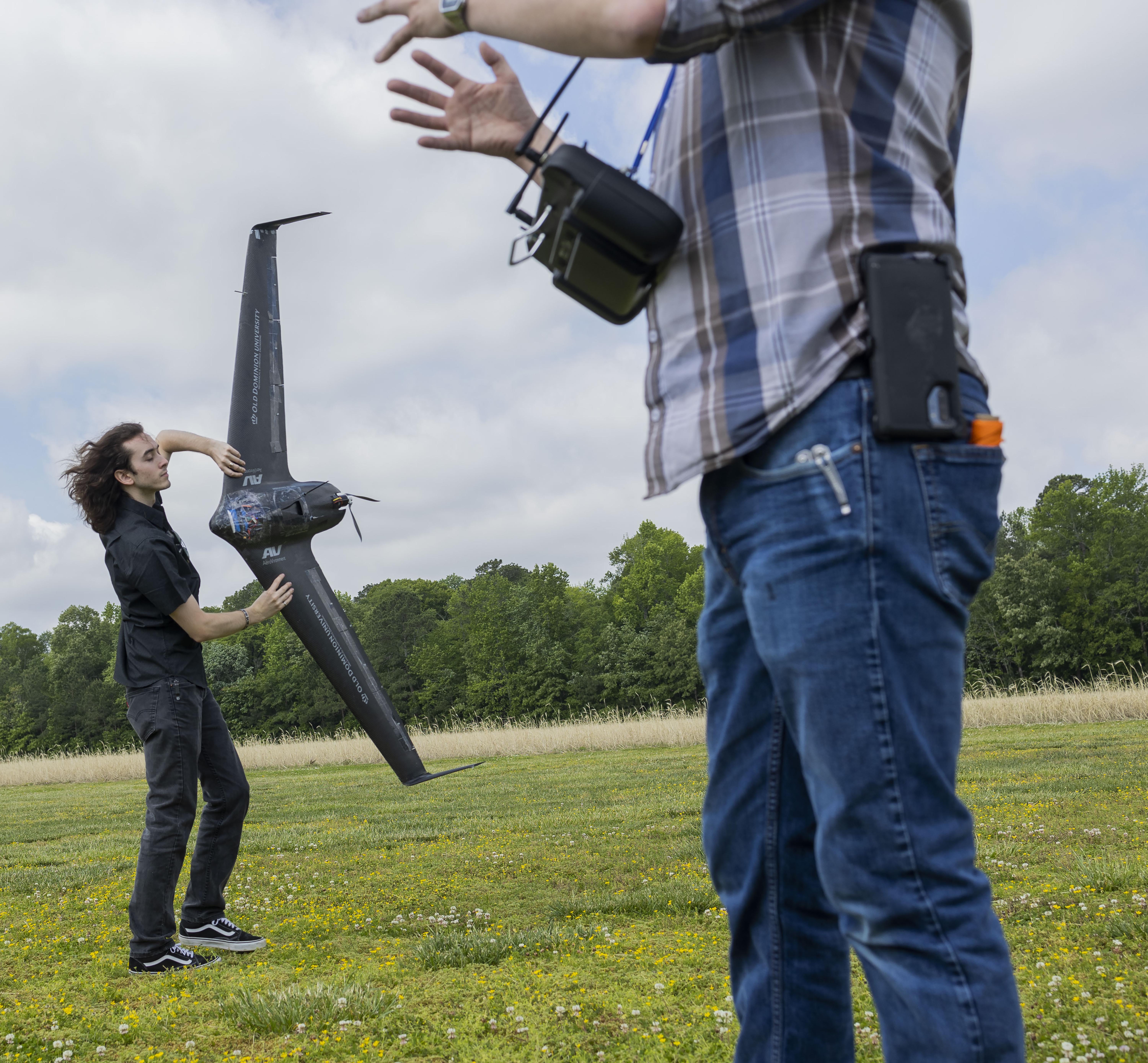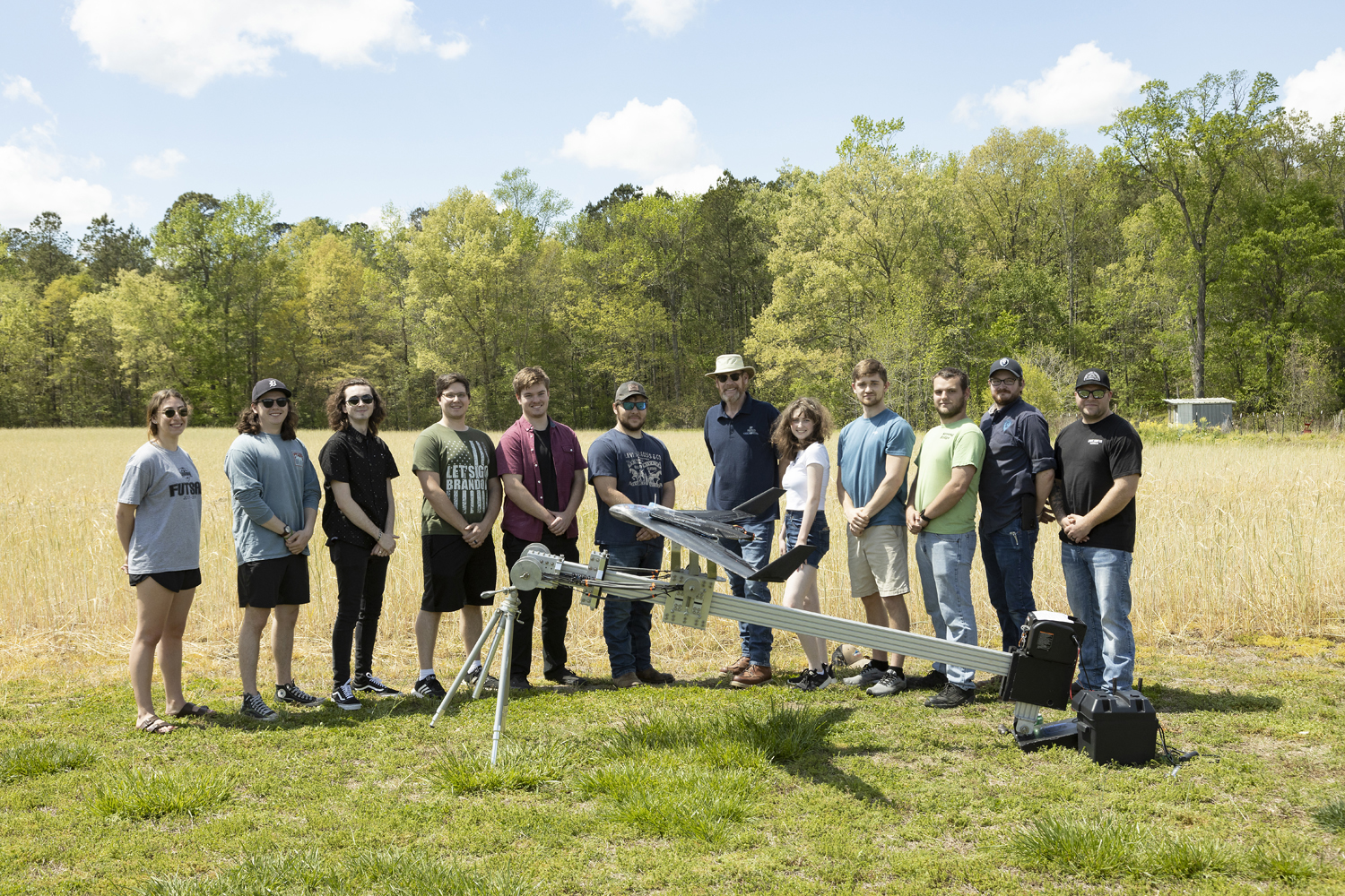 The student capstone project for the 2022-23 school year was sponsored by the well-known UAS company AeroVironment. The scope of the project required assistance from graduate students Rob Stuart and Phil Mantz who led the undergraduates under advisor Dr. Drew Landman to create the Gryphon UAS.  In this project, students were tasked with developing a low-cost, modular, reusable, (non-lethal) platform for swarming (flying multiple aircraft simultaneously) that is easy and quick for a few people to set up, deploy, run a mission, recover, and re-use.