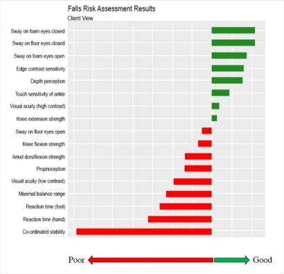 The comprehensive assessment predicts the likelihood you will fall in the next 6 months, as well as specific guidance on addressing your unique risk factors. The assessments allow us to prospectively identify those persons at risk of falling and gain a clearer understanding of the specific risk factors that may predispose them to falling.