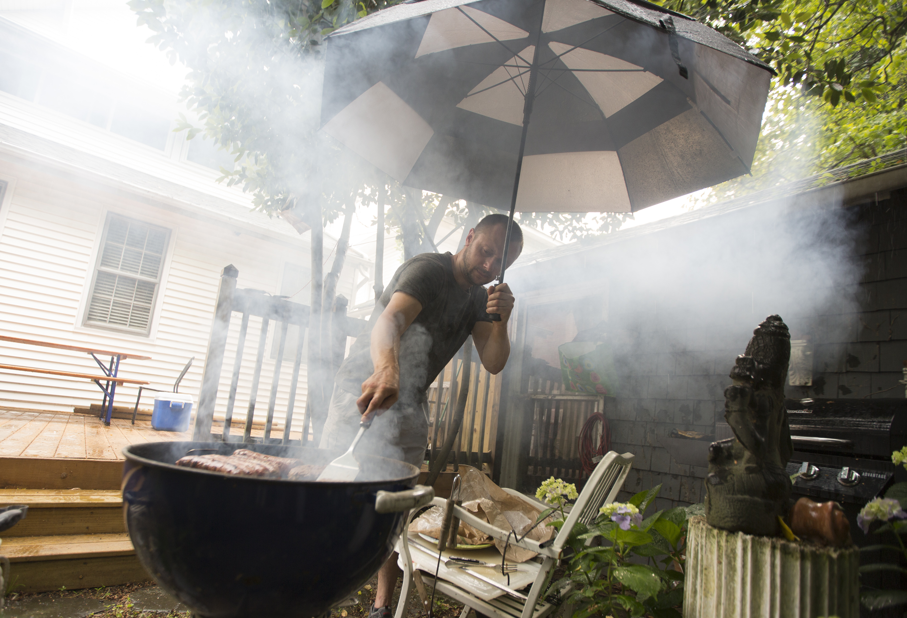 “I’m excited for you,” Marshall said as he and the four former strangers dug into a meal prepared by Tovsta and Tovstyi, who braved a sudden downpour to manage the grill.