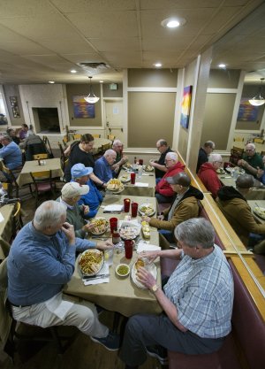 They began having weekly lunches once they all retired, 20 or so years ago. They can’t quite recall how the idea started. They initially gathered at a Surf Rider. When that location closed, they tried a couple other restaurants before landing on Gus and George’s, where the food is good and reasonably priced — and their regular server knows them by name.
