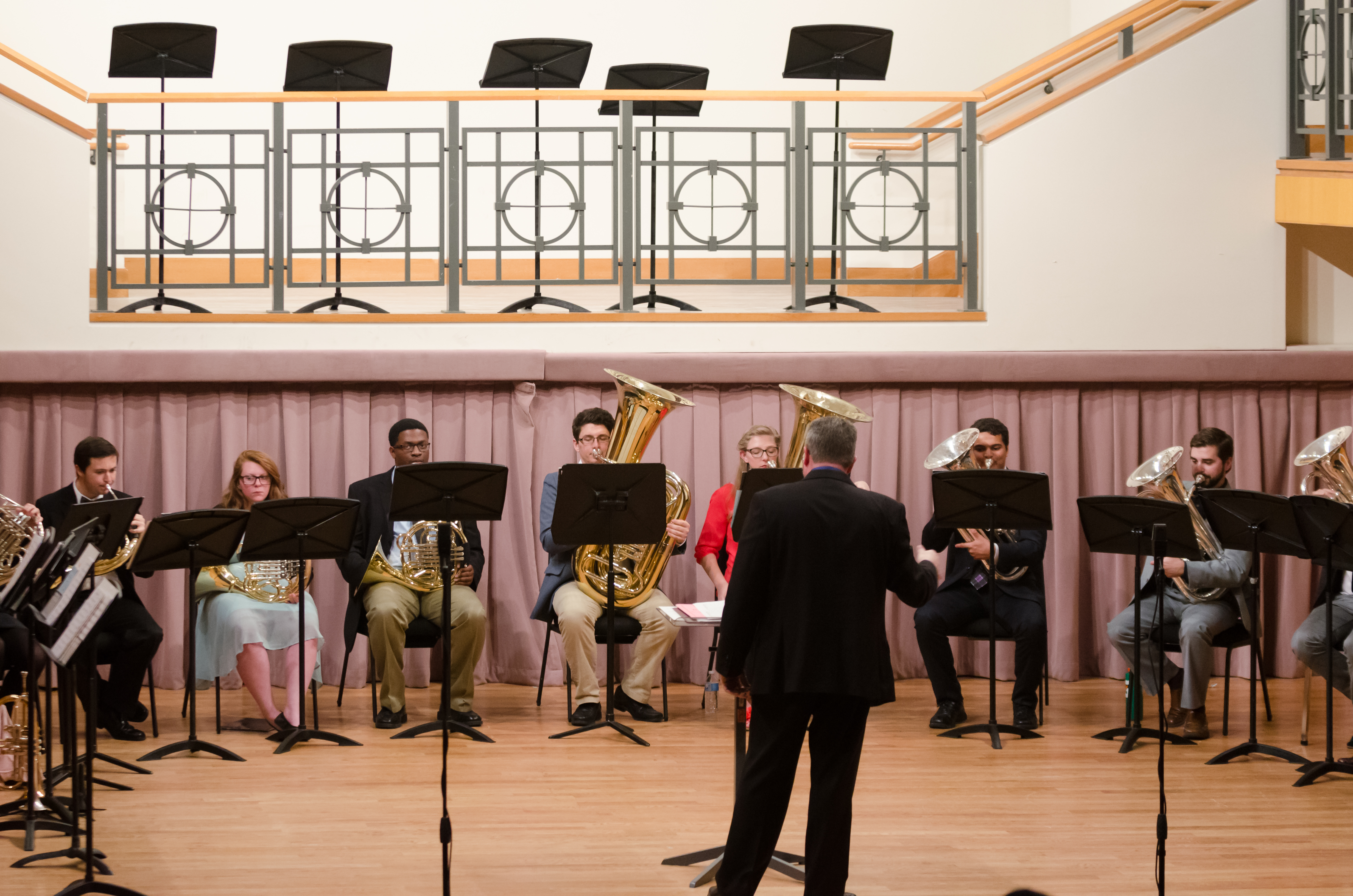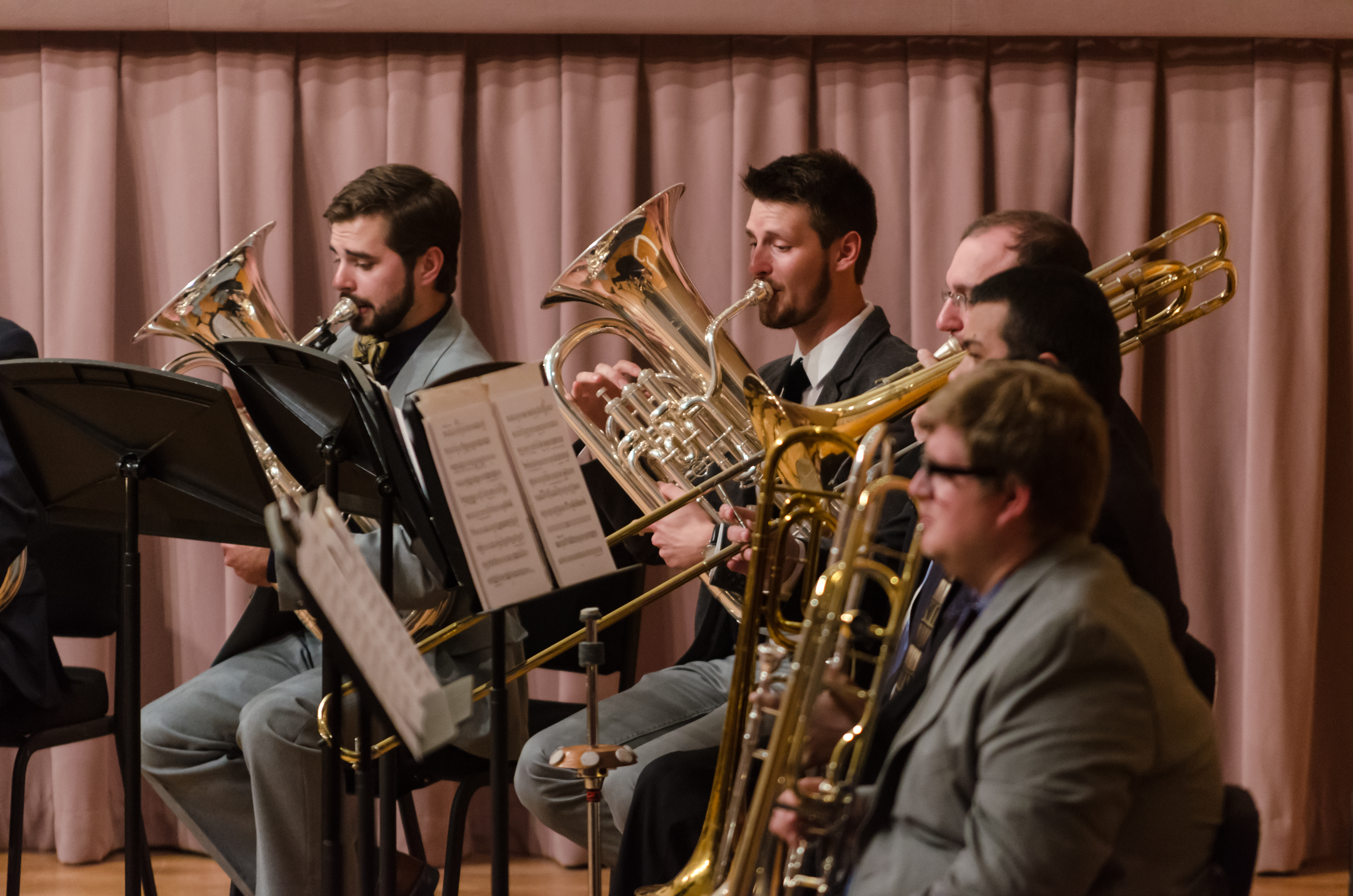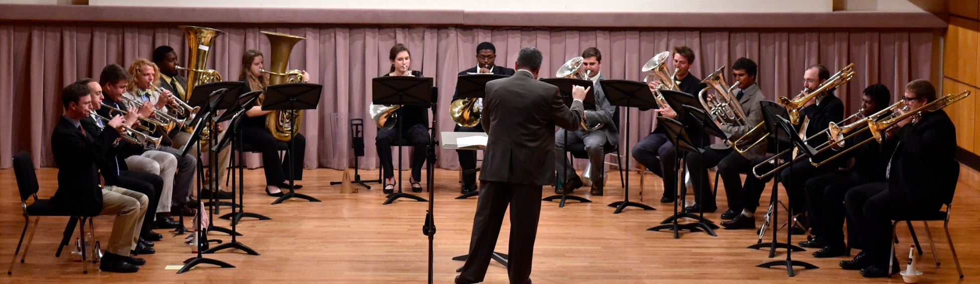 The ODU Brass Choir has been performing continuously since 1972 under the direction of William Bartolotta, and since 2006, directed by Mike Hall. The ensemble performs works written specifically for brass as well as arrangements of choral, orchestral, jazz, pop and show music. Performances are regularly given on and off campus featuring student as well as guest artist soloists. The choir often divides into smaller groups to perform chamber music. The Brass Choir rehearses MWF, 12:00-12:50 in Chandler Recital Hall.