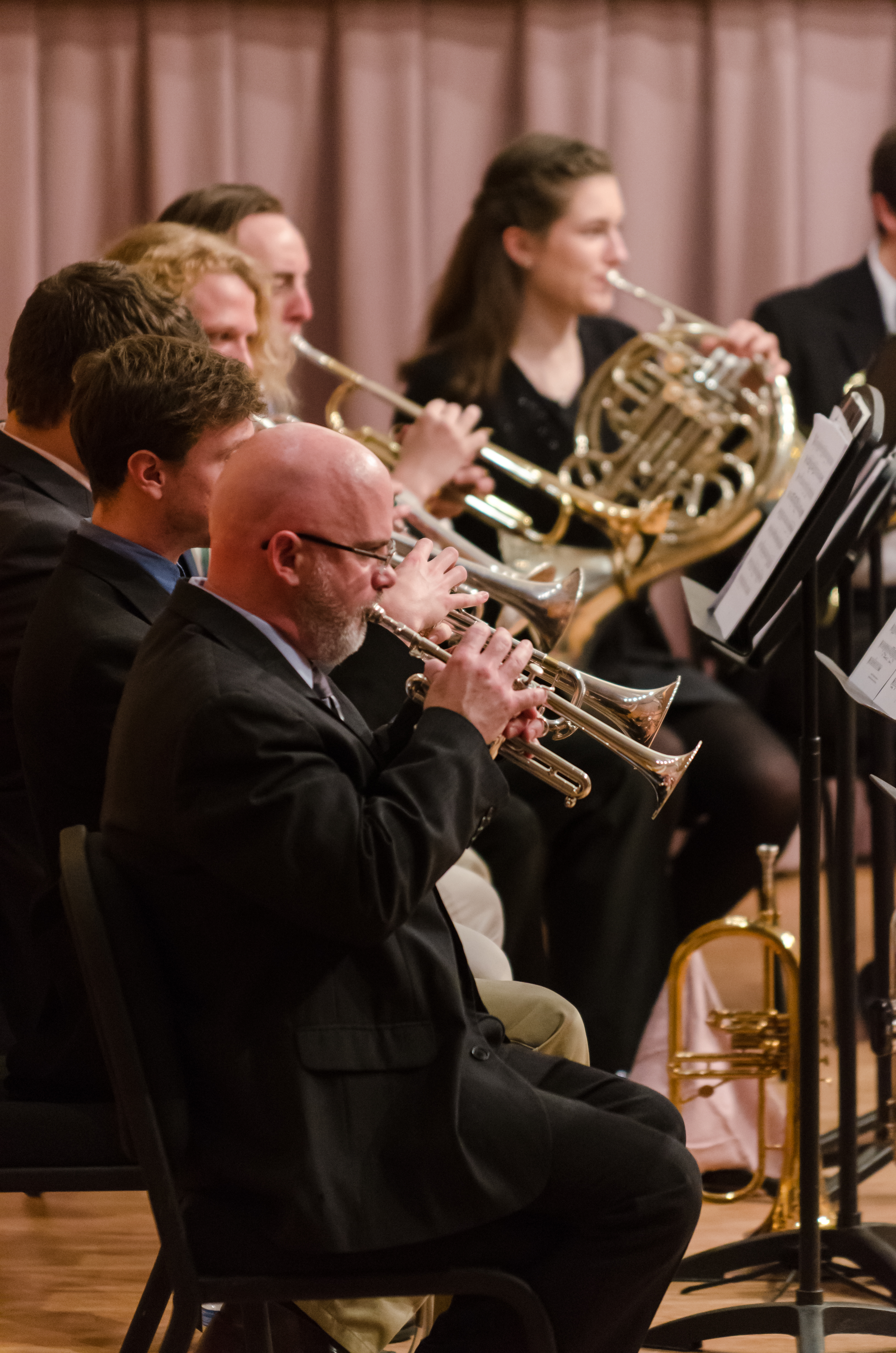 The ODU Brass Choir holds auditions the first Monday of each semester 12:00-12:50 in Chandler Recital Hall. All music is supplied at the audition and consists of technical exercises, melodies and ensemble music. Everyone plays together on stage for the hour. You may be asked to play solo for brief passages. Roster is posted the next day outside Dr. Hall's studio, 2113. All are welcome to audition regardless of major.
