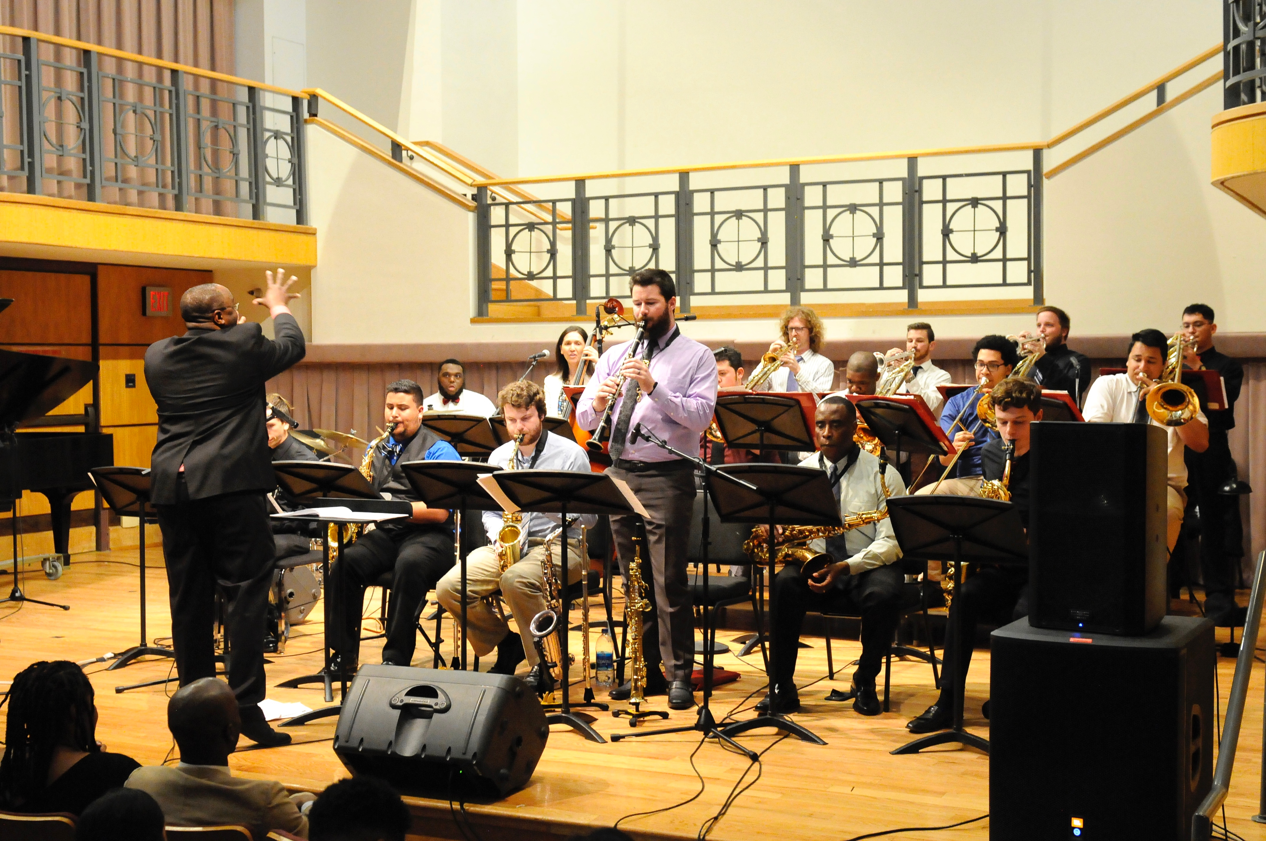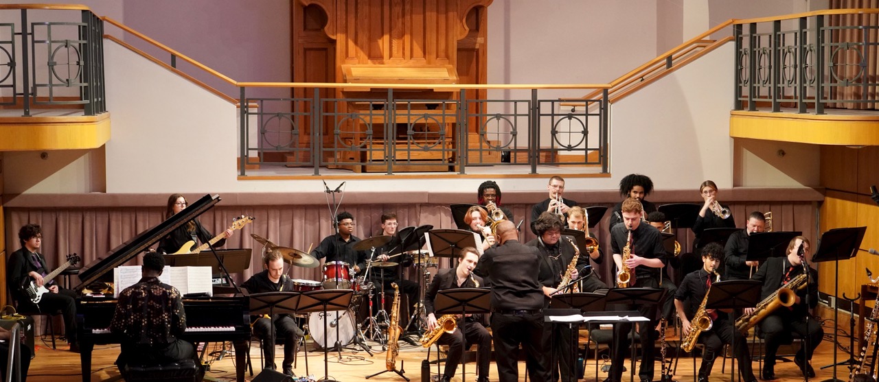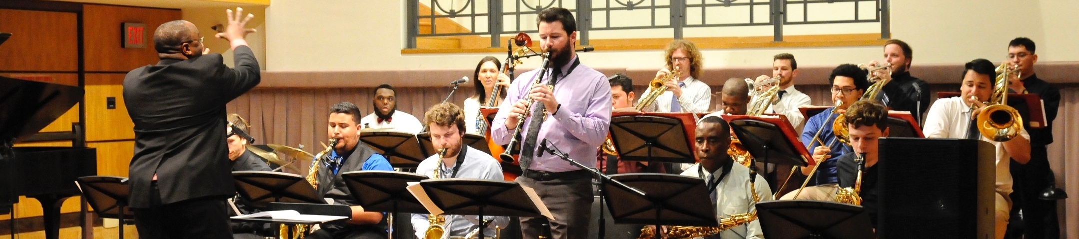 The ODU Jazz Orchestra is featured in multiple concerts every semester, performing standard and contemporary big band originals and arrangements. Each spring semester, the ensemble performs with a nationally known jazz artist as part of a five-day jazz residency sponsored by the Diehn Concert Series. The 2026 ODU Jazz Residency is April 16-20; the performances will feature internationally renowned trumpeter Rex Richardson. Past artists include Chris Whiteman, Dr. Lisanne Lyons, John Fedchock, Lori Williams, Houston Person, Katie Thiroux, Dick Oatts, Kenny Washington, John D'earth, Glenn Wilson, Nicki Parrott, Darmon Meader, Randy Brecker, Terrell Stafford, Bob Mintzer, Clark Terry, and John Abercrombie.