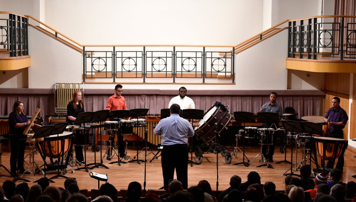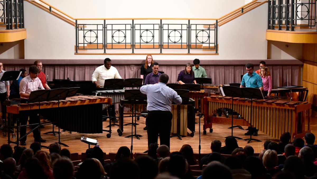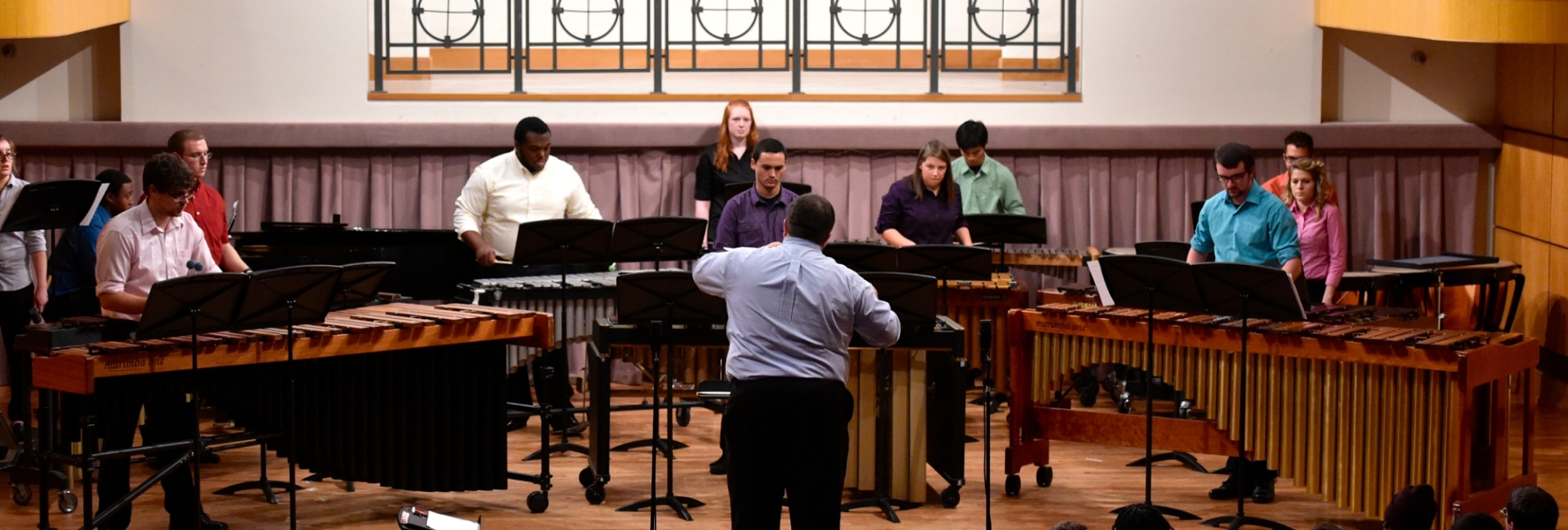 Directed by Professor David Walker, The ODU Percussion Ensemble studies and performs a variety of contemporary and classic percussion literature. The most recent Percussion Ensemble performance was "Fast and Furious," featuring works by Tchaikovsky, Zivkovich and Barber.