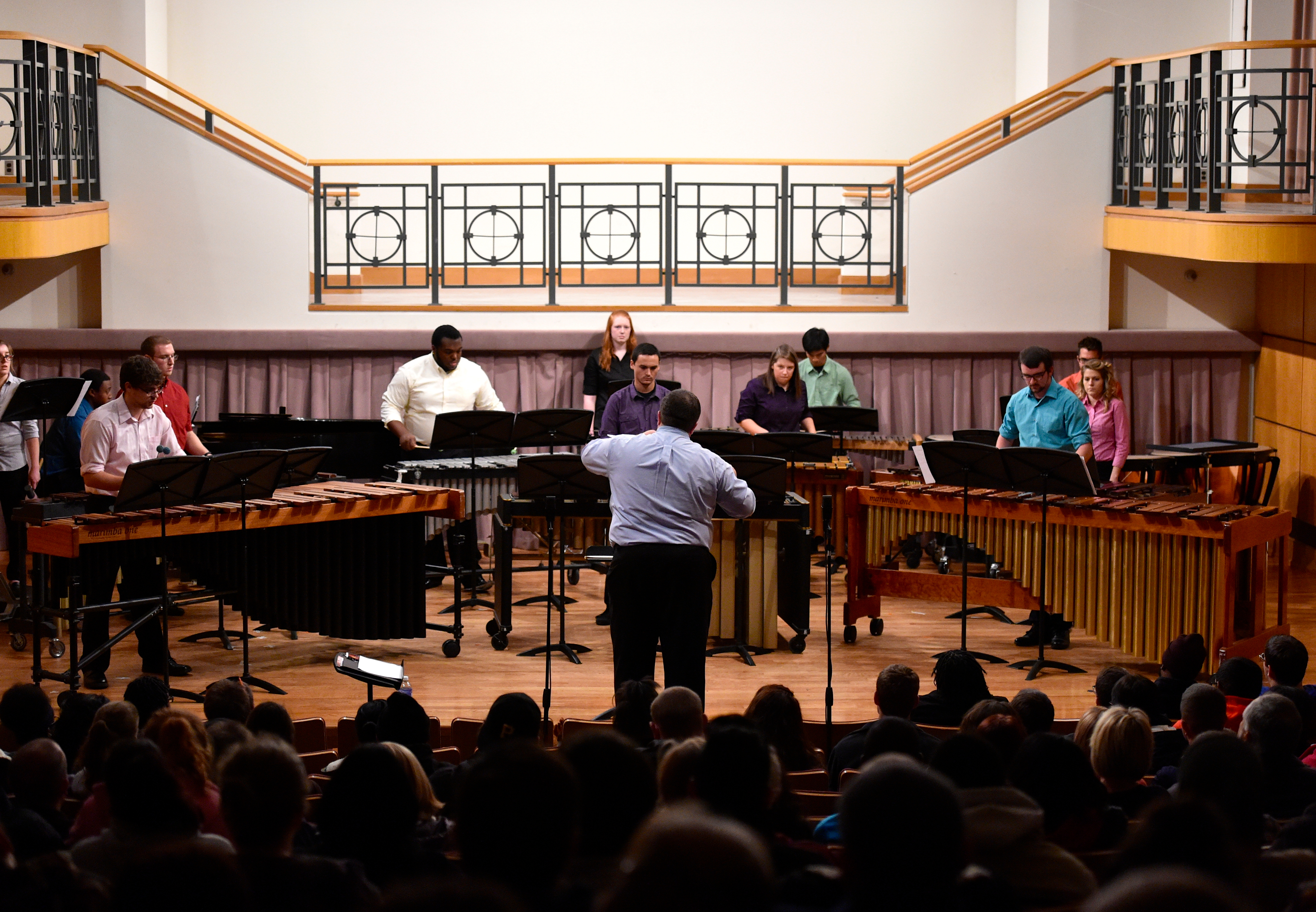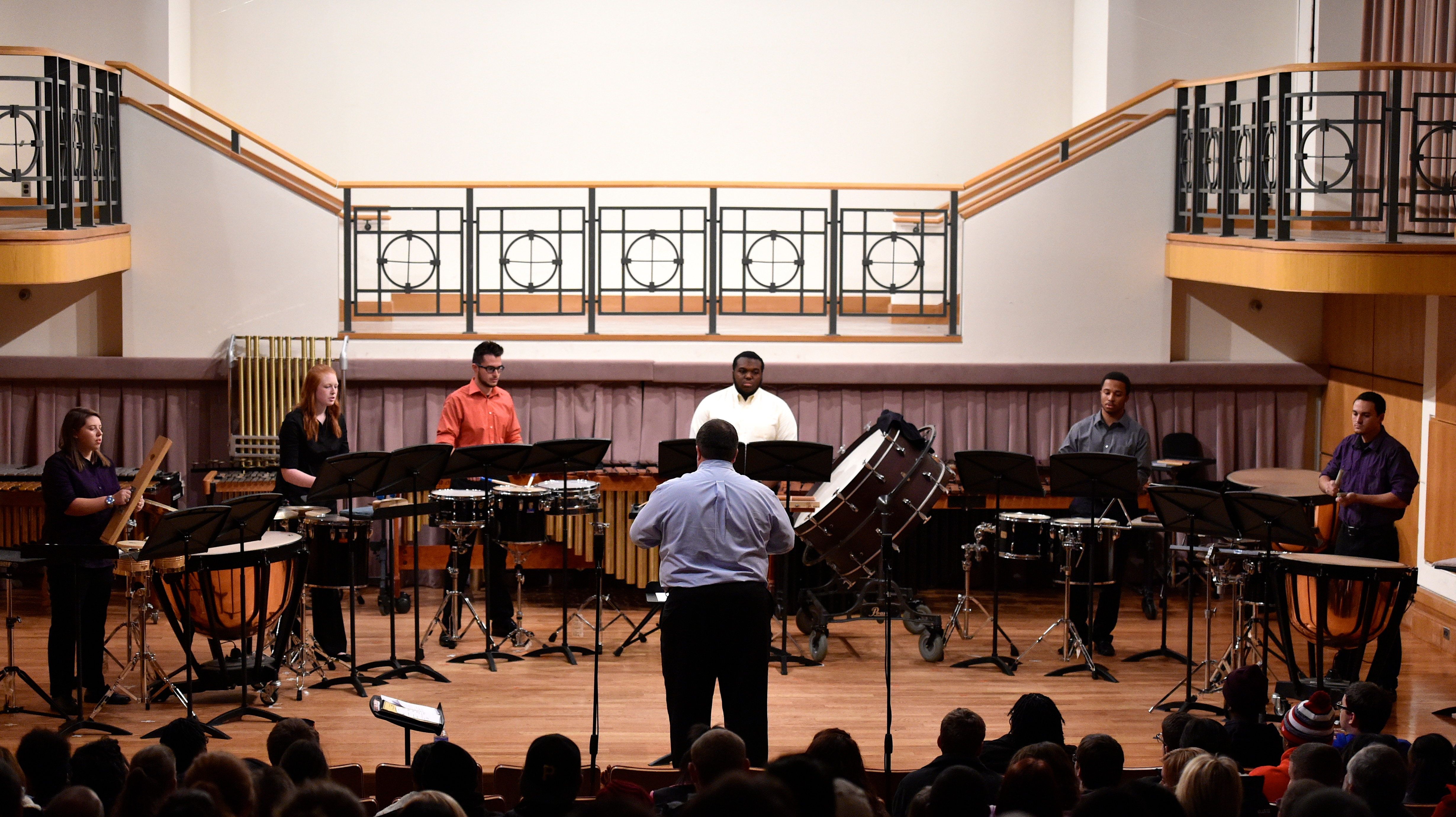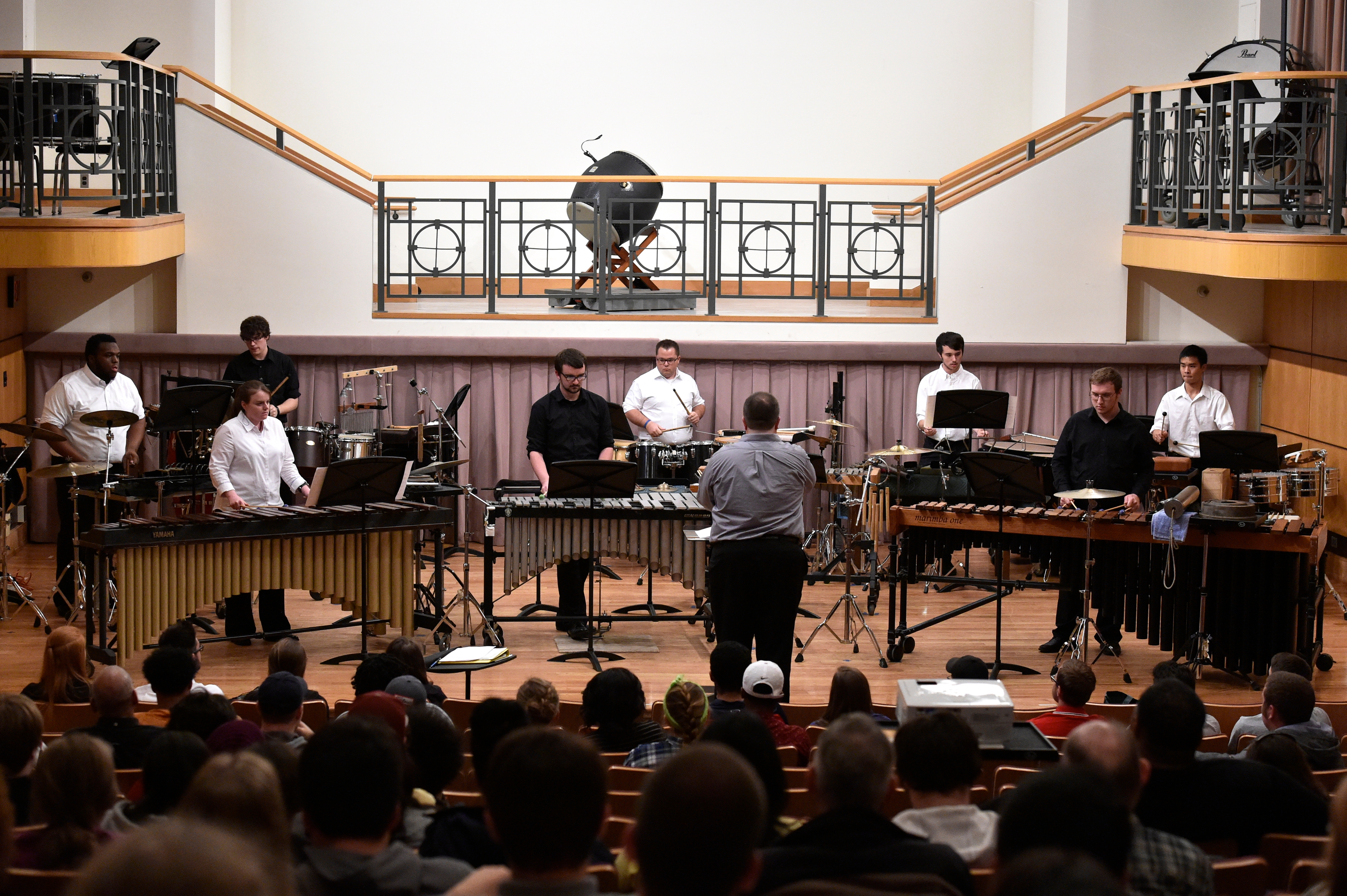 Directed by Professor David Walker, The ODU Percussion Ensemble studies and performs a variety of contemporary and classic percussion literature. The most recent Percussion Ensemble performance was "Fast and Furious," featuring works by Tchaikovsky, Zivkovich and Barber.