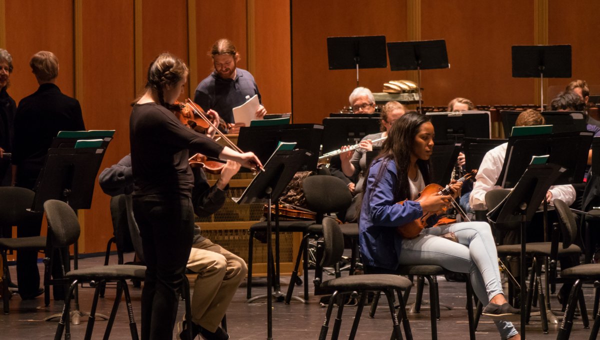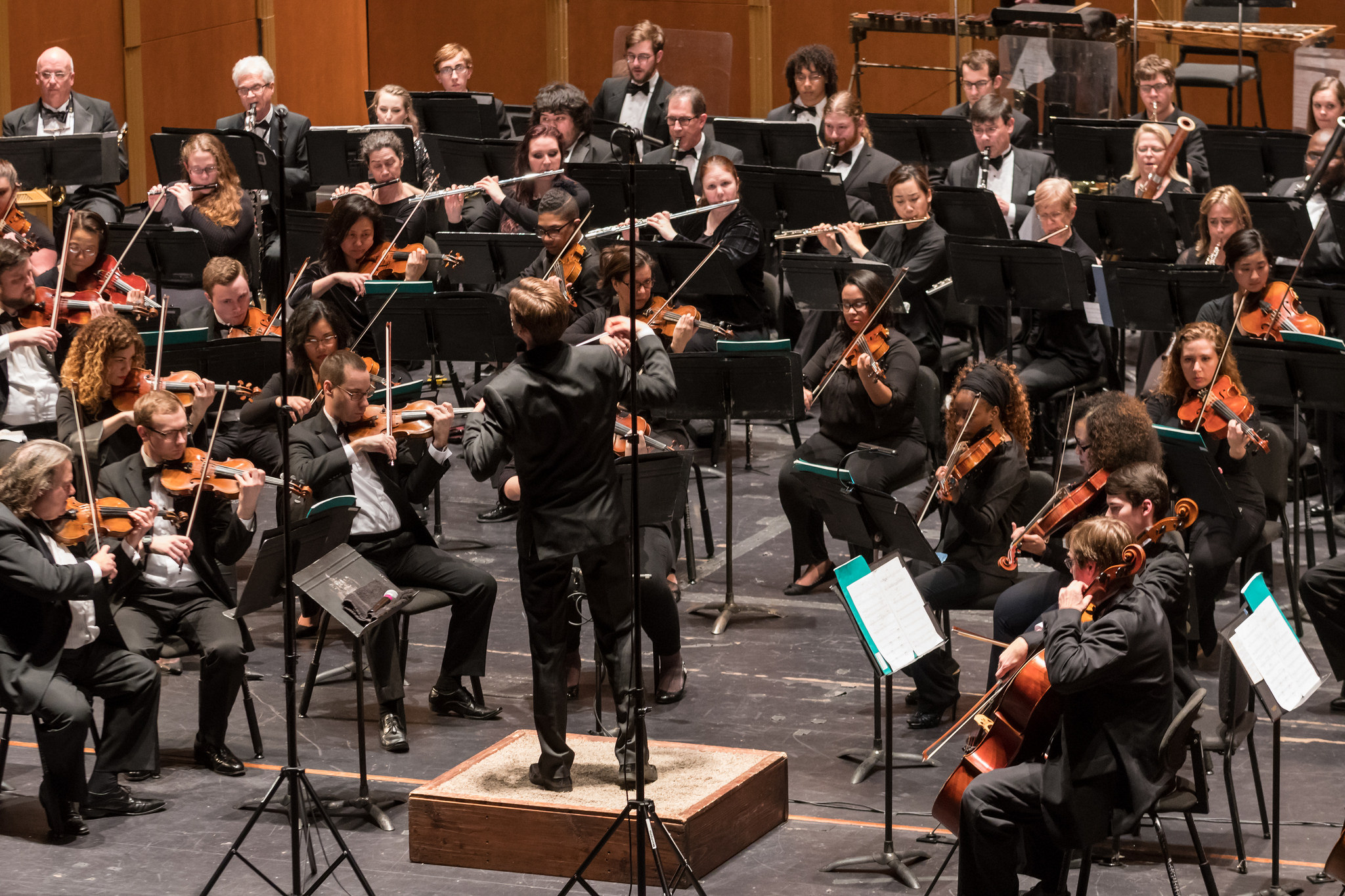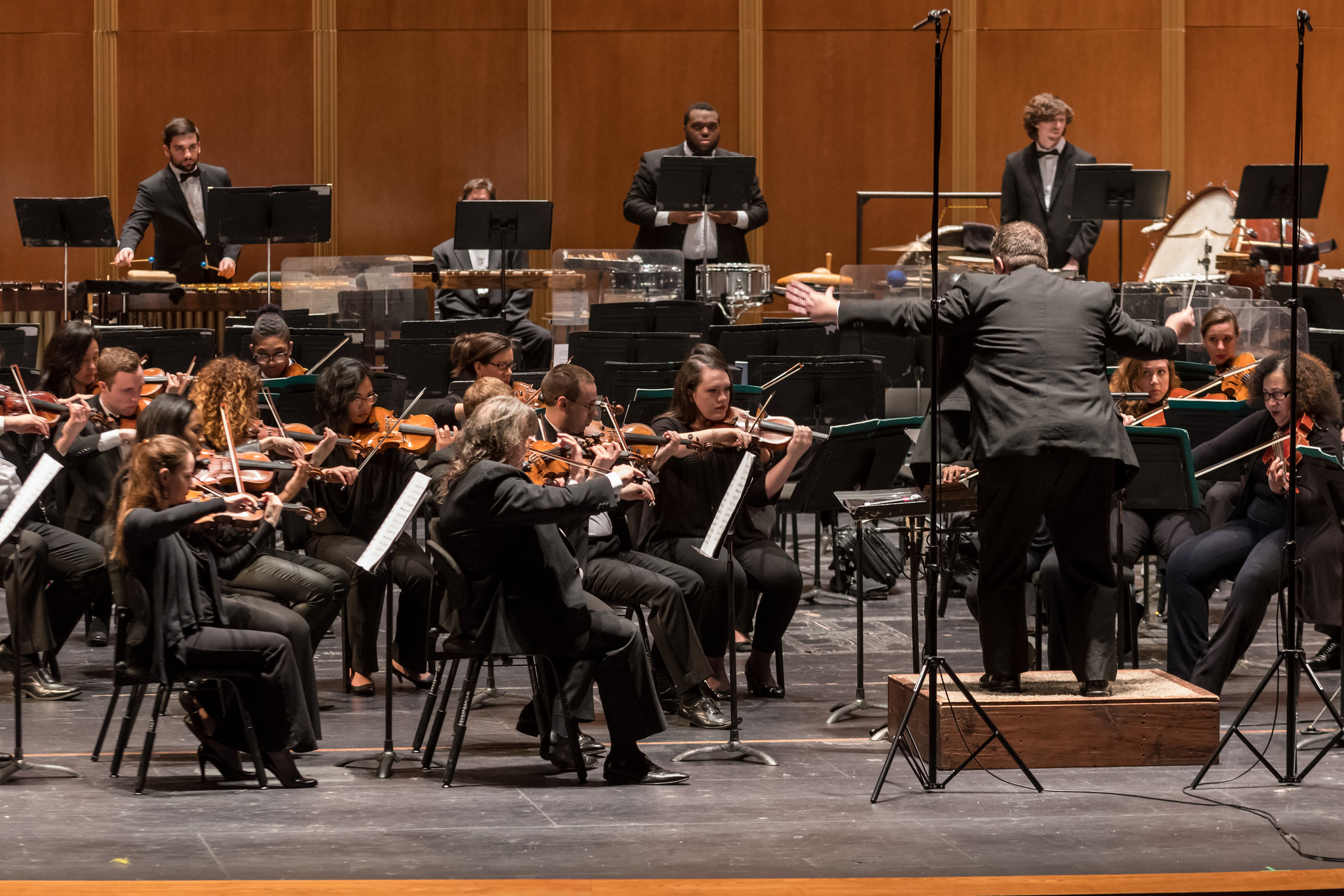 The Old Dominion University Symphony Orchestra teamed up with the Virginia Symphony Orchestra for the first time in 2018 with a side-by-side "Russian Perspectives" concert. Works included Rimsky-Korsakov's Russian Easter Overture, led by music director Paul Kim; Shchedrin's Carmen Suite, conducted by percussion instructor David Walker and featuring the ODU Percussion Ensemble; and Mussorgsky's Pictures at an Exhibition, led by VSO's Benjamin Rous.