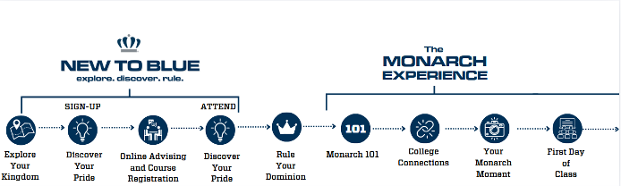 The New to Blue timeline is accompanied by the new student checklist that can be found in your myODU portal.